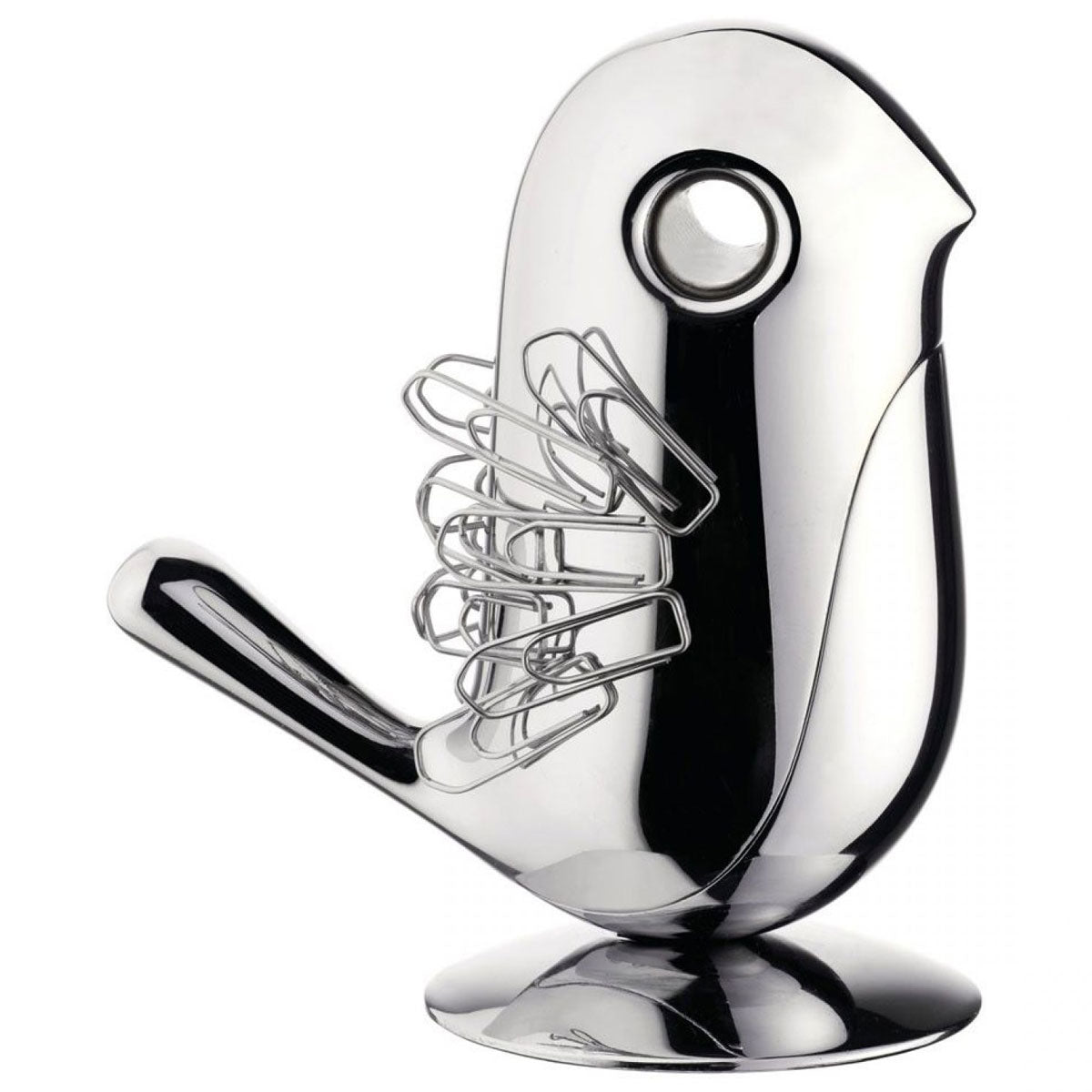 Schönes Design verbunden mit Funktionalität ist, was die Alltagsprodukte der italienischen Marke Alessi so beliebt macht. Kreativ wie funktionell ist auch der Büroklammerspender CHIP von Designer Rodrigo Torres für Alessi. Der magnetische Vogel aus verchromtem Zamak mit glänzendem Finish hält Ihre Heftklammern, die ihm ein gefiedertes Aussehen verleihen, im Zaum. Die abgerundete Form macht den Magnetspender zu einem niedlichen Accessoire für den Schreibtisch. Ob im Büro oder zu Hause, CHIP sorgt gekonnt für Ordnung. So süß der Büroklammerhalter in seiner Erscheinung ist, so robust und stabil ist er jedoch in seinem Gebrauch und wird daher auch gern als Briefbeschwerer verwendet.