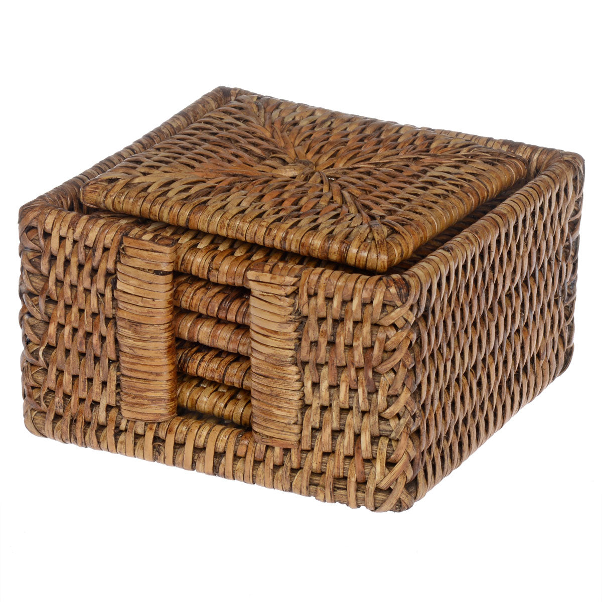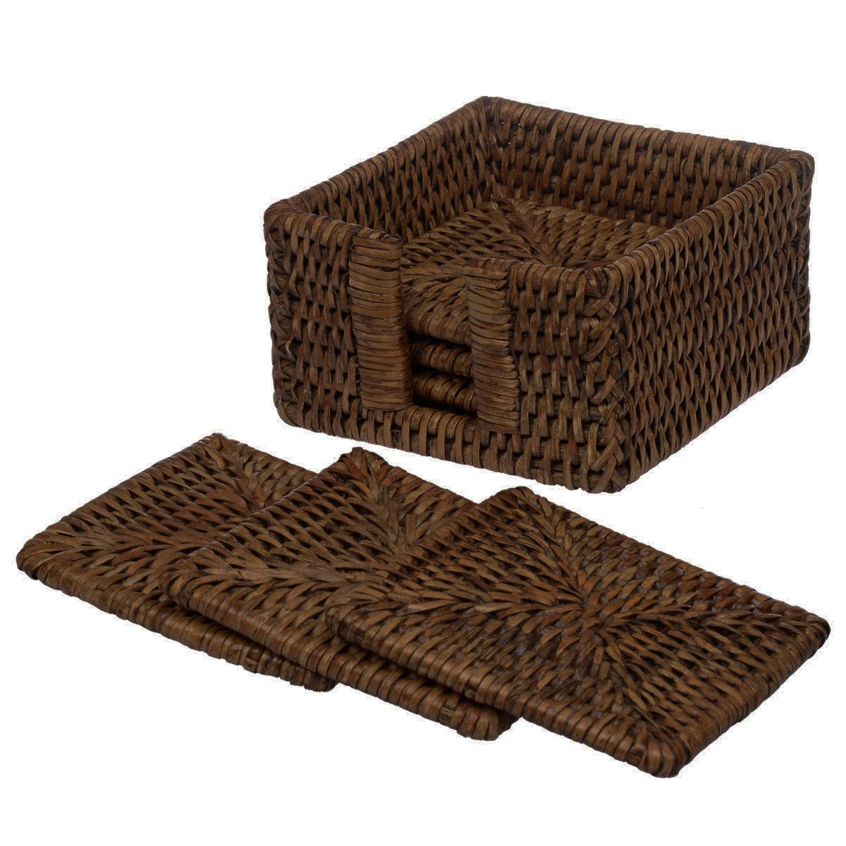 Die eckigen Glasuntersetzer aus unserer hauseigenen Rattan Kollektion sind eine stilvolle Ergänzung für Bar und Tisch. Die handgefertigten Getränkeuntersetzer bestehen aus geflochtenem Rattan, haben eine satte braune Farbe und kommen in den Maßen 10 x 10 x 0,7 cm. Geliefert werden die Untersetzer in einem 7-teiligen Set bestehend aus sechs Untersetzern und einem passendem Halter zur Aufbewahrung (12 x 12 x 7,5 cm). Ideal für den alltäglichen Gebrauch und für besondere Anlässe.