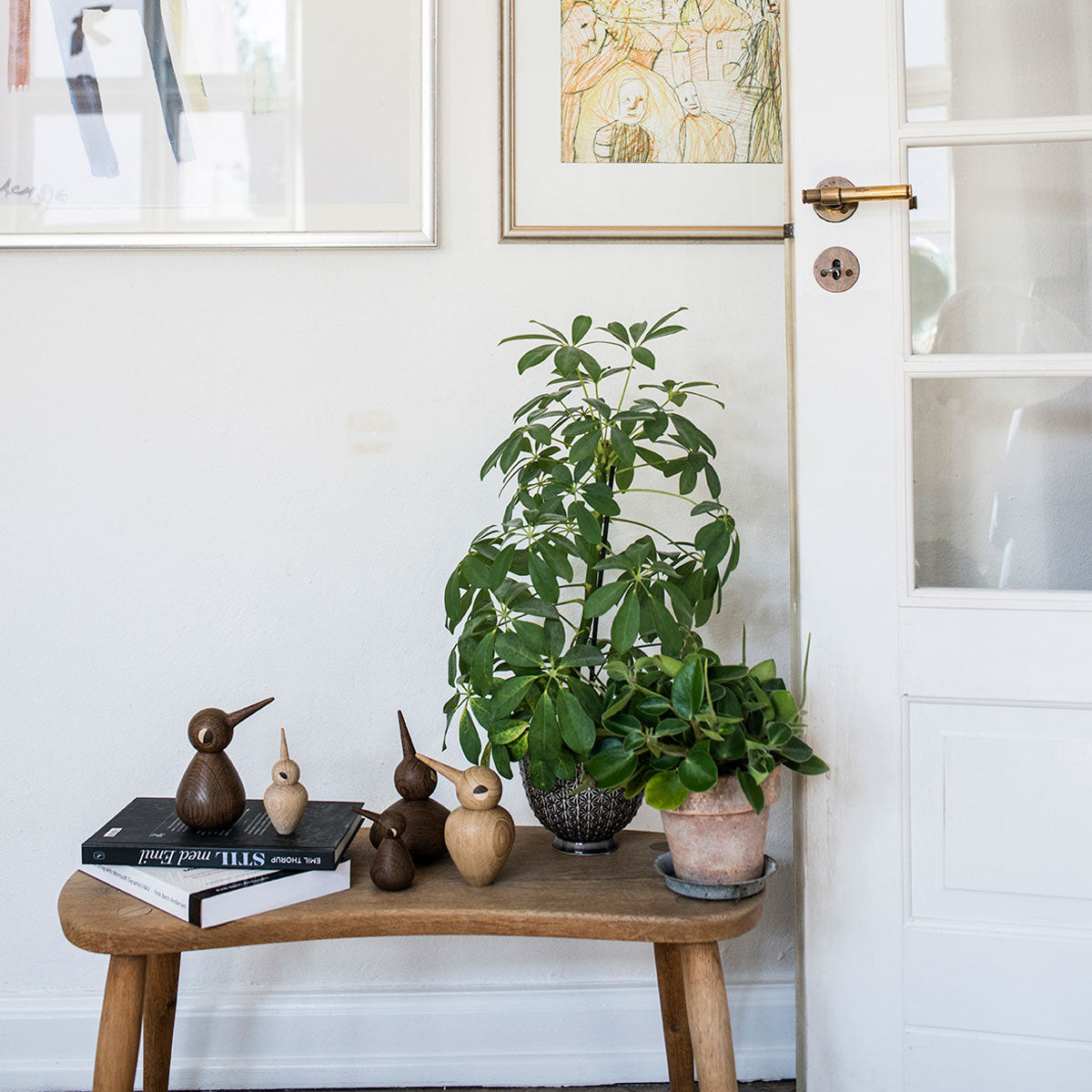 Schon 1959 wurde die Bird-Reihe von dem dänischen Designer Kristian Vedel entworfen. Seitdem haben die Vögel aus Holz sich über dem gesamten Globus verbreitet und in vielen Wohnungen ihr Zuhause gefunden. Das Besondere dieser wahrhaft zeitlosen Holzvögel ist, dass sie sehr ausdrucksstark sind. Sie können die unterschiedlichsten Emotionen zeigen. Da der Kopf lose, in einer Mulde, auf dem Körper liegt, können durch die Blickrichtung und Neigung des Kopfes unterschiedliche Stimmungen ausgedrückt werden. Durch Kippen des Kopfes wirken sie traurig, glücklich, gedankenvoll oder neugierig. Wenn Sie möchten, können sie durch die Birds Ihre eigene Stimmungslage zum Ausdruck bringen. Den Körper kann man nach Belieben aufstellen. Ist die dünnere Seite unten, stellt es einen männlichen Vogel dar und ist die dünnere Seite oben ist es ein weiblicher Vogel. Die Birds von ArchitectMade sind ein Schwarm bestehend aus zwei Größen und zwei Farben. Sie werden in einer kleinen dänischen Schreinerei aus Eichenholz in bester Qualität gefertigt.