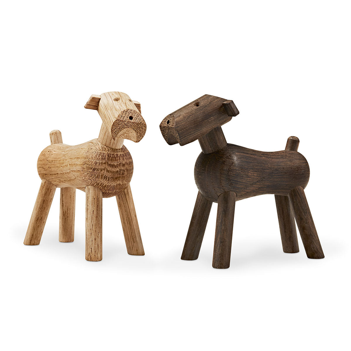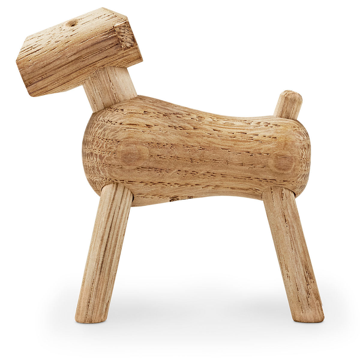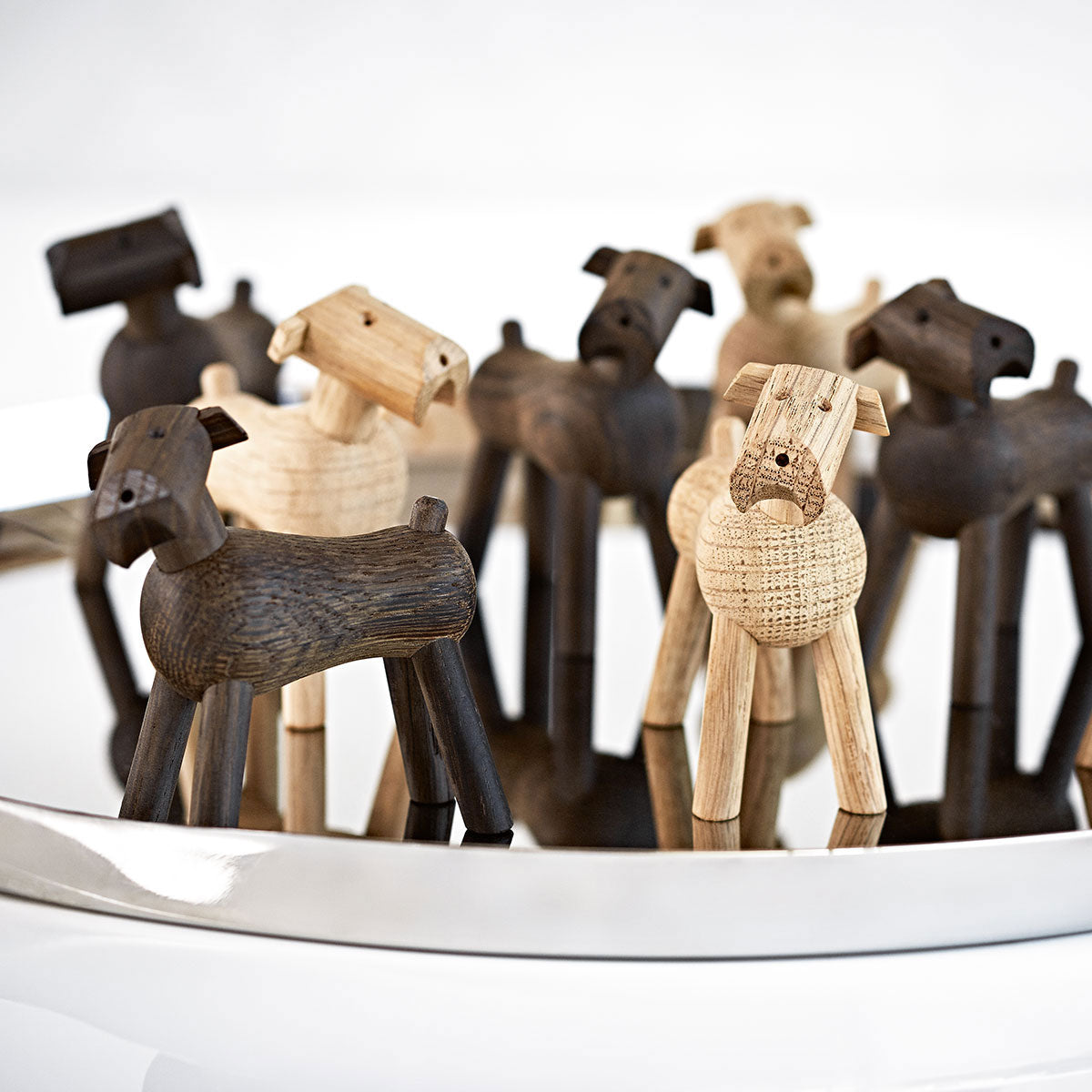 Ob Terrier, Dackel oder Mops – alle Hunde haben eines gemeinsam, sie gelten als beste Freunde des Menschen. Und die besten Freunde verdienen es, einen besonderen Platz in Ihrem Heim zu erhalten. Der Holzhund Tim von Kay Bojesen bellt zwar nicht und kann auch nicht das Grundstück bewachen, wirkt aber trotzdem er lebendig und aufgeweckt. Sein Kopf ist drehbar und sein kurzer Stummelschwanz ist frech in die Höhe gerichtet. Der Terrier aus Eichenholz ist ein ideales Geschenk für alle Hundefreunde, egal ob Kind oder Erwachsen. Nach einem Kay Bojesen Entwurf von 1935 hält der Terrier nun Einzug in das moderne Zuhause und ist zu einem beliebten Sammelobjekt geworden.