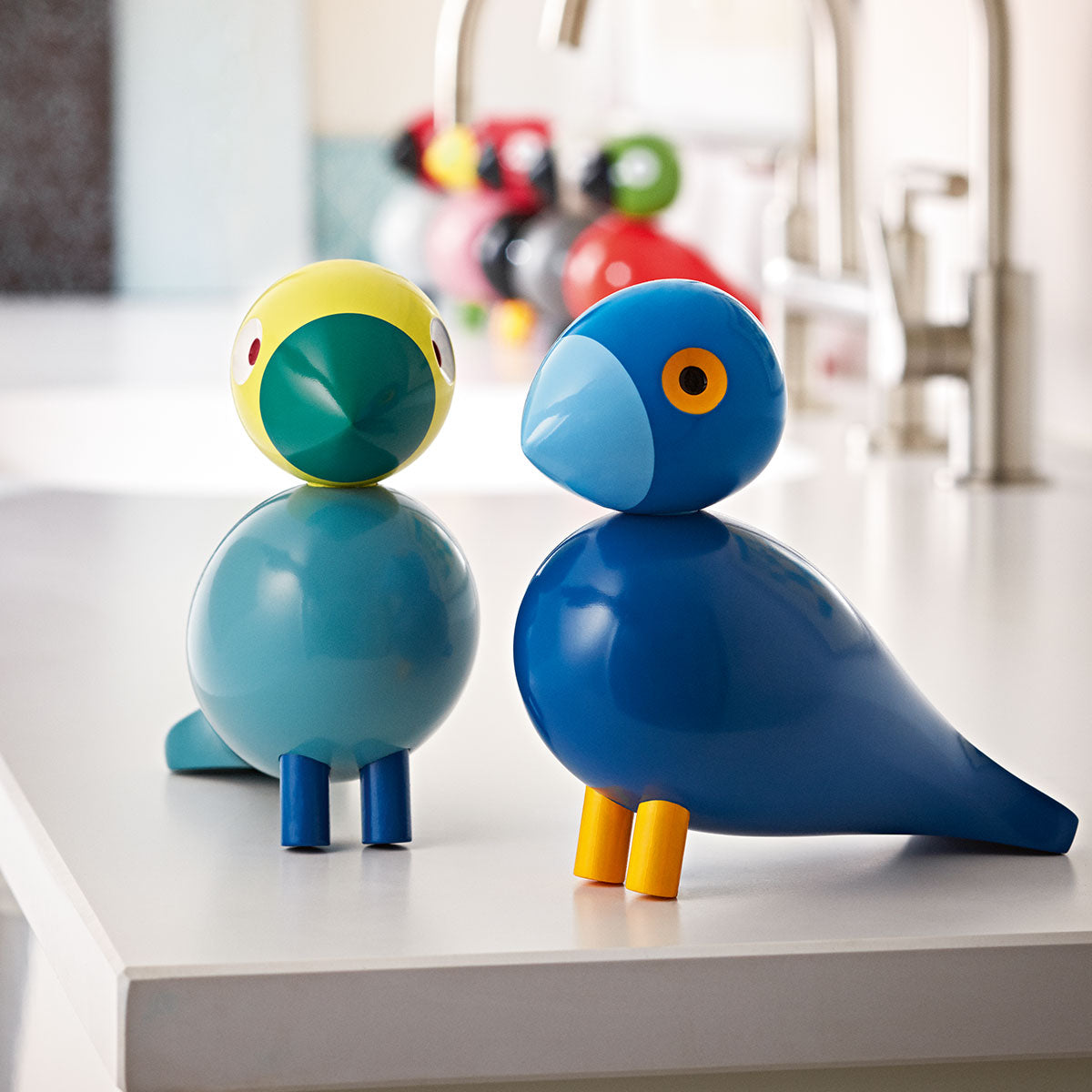 Kommt ein Vogel geflogen...Bereits 1950 entwarf Kay Bojesen seine Singvögel, sie sind allerdings niemals in Serie gefertigt worden. Erst 2011 hat sich der dänische Hersteller Rosendahl Design Group der Singvögel von Kay Bojesen angenommen. Seither verbreiten die kultigen Holzvögel in unseren Wohnungen gute Laune und sind beliebte Sammlerobjekte. Die Vögel gibt es in verschiedenen Farbkombinationen. Singvogel Kay wurde nach seinem Erschaffer selbst benannt. Da Kay Bojesen ein Fan von blauen Anzügen, Hemden oder Krawatten war, musste natürlich auch das gefiederte Ebenbild des Designers in freundlichen Blautönen erstrahlen.