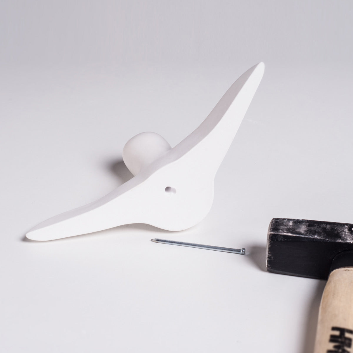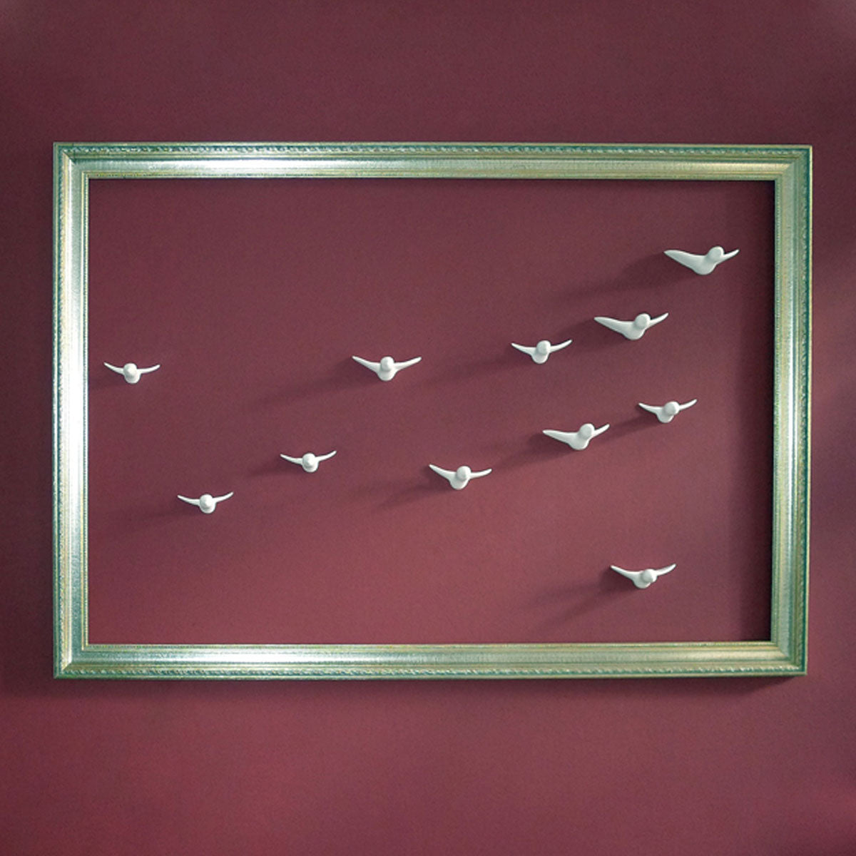 Der kleine Vogelschwarm verleiht jeder Wand eine natürliche Eleganz. Schlicht aber besonders zieht dieser Blickfang die Augen auf sich, ohne eine Wand zu überladen. An der Wanddeko kann man sich nicht sattsehen. Die 4 weißen Vögel aus Keramik haben eine seidenmatte glatte Oberfläche und werden in 3 verschiedenen Größen geliefert. Sie sind für die Anbringung im Innen- und Außenbereich geeignet, sind wasserfest und witterungsbeständig. Eine einfache Montage mit Nägeln macht den kleinen Vogelschwarm von Thomas Poganitsch bereit für den "Durchbruch". Das Spiel mit Licht und Schatten ändert die Wahrnehmung der handgefertigten Skulpturen und sorgt so unwillkürlich für ein Lächeln. Der kleine Vogelschwarm gibt viel Gestaltungsspielraum. Ton-in-Ton auf einer weißen Wand wirkt er sehr elegant und zurückhaltend. Auf dunklem Hintergrund wie Holz, Beton oder Backstein werden die Vögel wirkungsvoller wahrgenommen.
