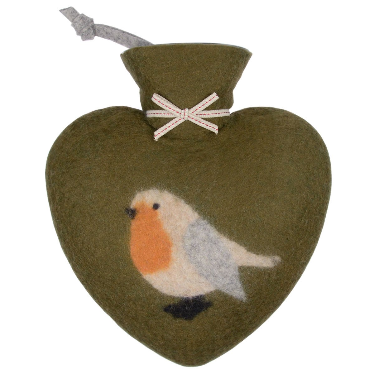 Eine gute Wärmeflasche sollte in keinem Haushalt fehlen. Die Dorothee Lehnen Wärmflasche in Herzform ist daher heiß begehrt. Bei Beschwerden wie Verspannungen und Bauchschmerzen verschafft sie im Nu Linderung. Und bei kalten Füßen heizt sie im Bett oder auf dem Sofa noch einmal ordentlich ein. Verstecken brauchen Sie den heißen Freund für kalte Tage und Nächte aber nicht, denn die Manufaktur Dorothee Lehnen setzt bewusst auf stilvolle Designs, hochwertige Rohstoffe und eine qualitätsvolle Verarbeitung. So wird die 0,7 Liter und TÜV-geprüfte Marken-Wärmflasche aus Deutschland von einem handgefilzten Bezug aus 100 % GOTS-zertifizierter Merinowolle umgeben. Verziert ist der kuschelige Wärmflaschenbezug Rotkehlchen mit einem niedlichen Vogelmotiv auf der Vorderseite. Eine aufmerksame Geschenkidee für alle Vogelliebhaber und Tierfreunde.