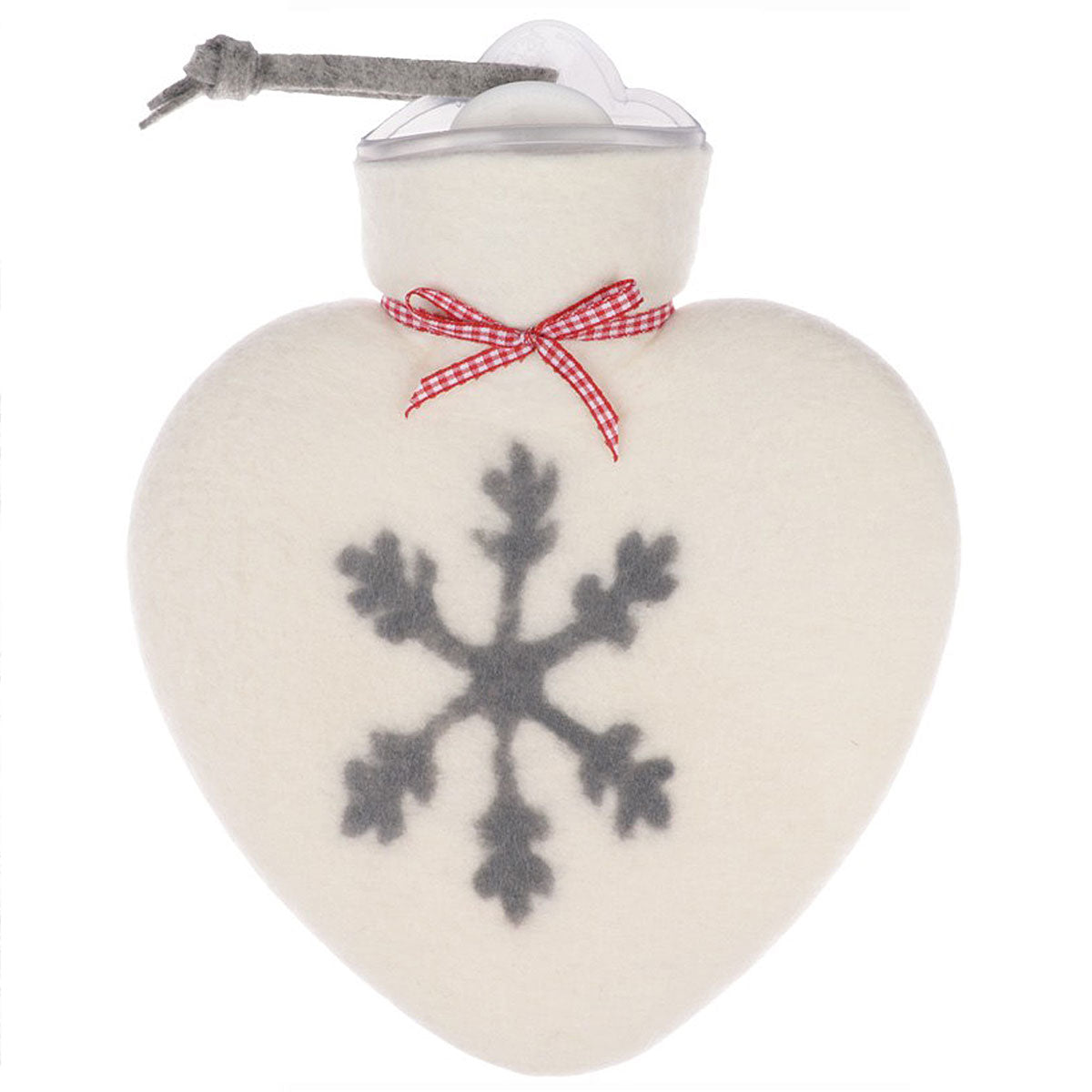 Dorothee Lehnen Herzwärmflasche Weiß Schneeflockenmotiv Grau
