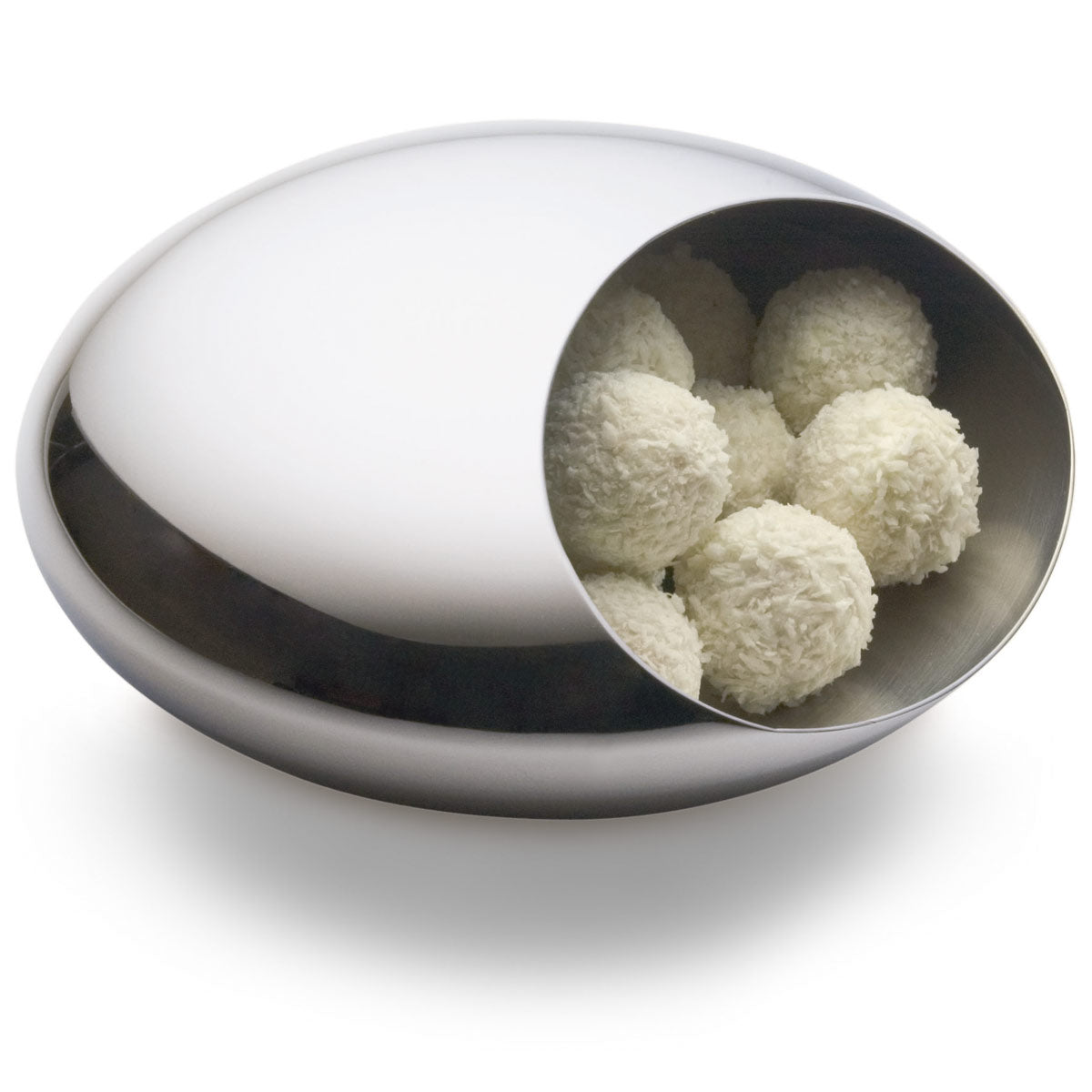 Mit wenigen Highlights eine besondere Atmosphäre kreieren? Dieser Herausforderung stellt sich die deutsche Marke Philippi immer wieder aufs Neue. Anstelle eines bunten Interieurs bevorzugen die Designer rund um Jan P. Philippi den Purismus. Der gelingt am besten mit Accessoires aus poliertem Edelstahl. Ein gelungenes Beispiel dafür ist die simple und zugleich raffinierte Form der Naschschale COCOON. Ein Stein, ein Ufo oder doch ein Kokon? Es bleibt der Fantasie überlassen, an was die futuristische Schale erinnert. Ihre Funktion ist vielseitig. Servieren Sie Obst, Nüsse oder Süßes. Aber auch für die Aufbewahrung von Schmuck, Krimskrams auf dem Schreibtisch oder im Bad ist die Designer Schale bestens geeignet.