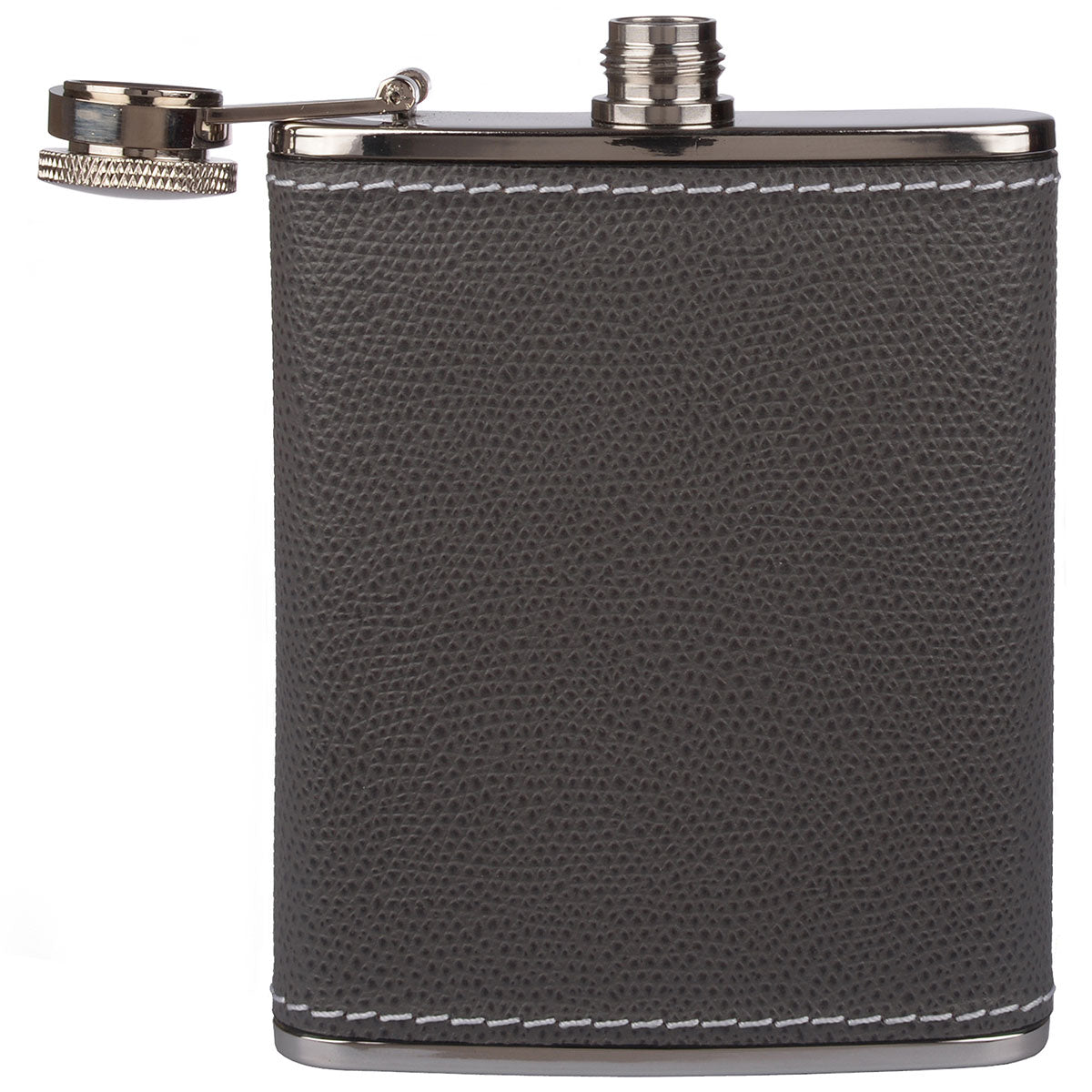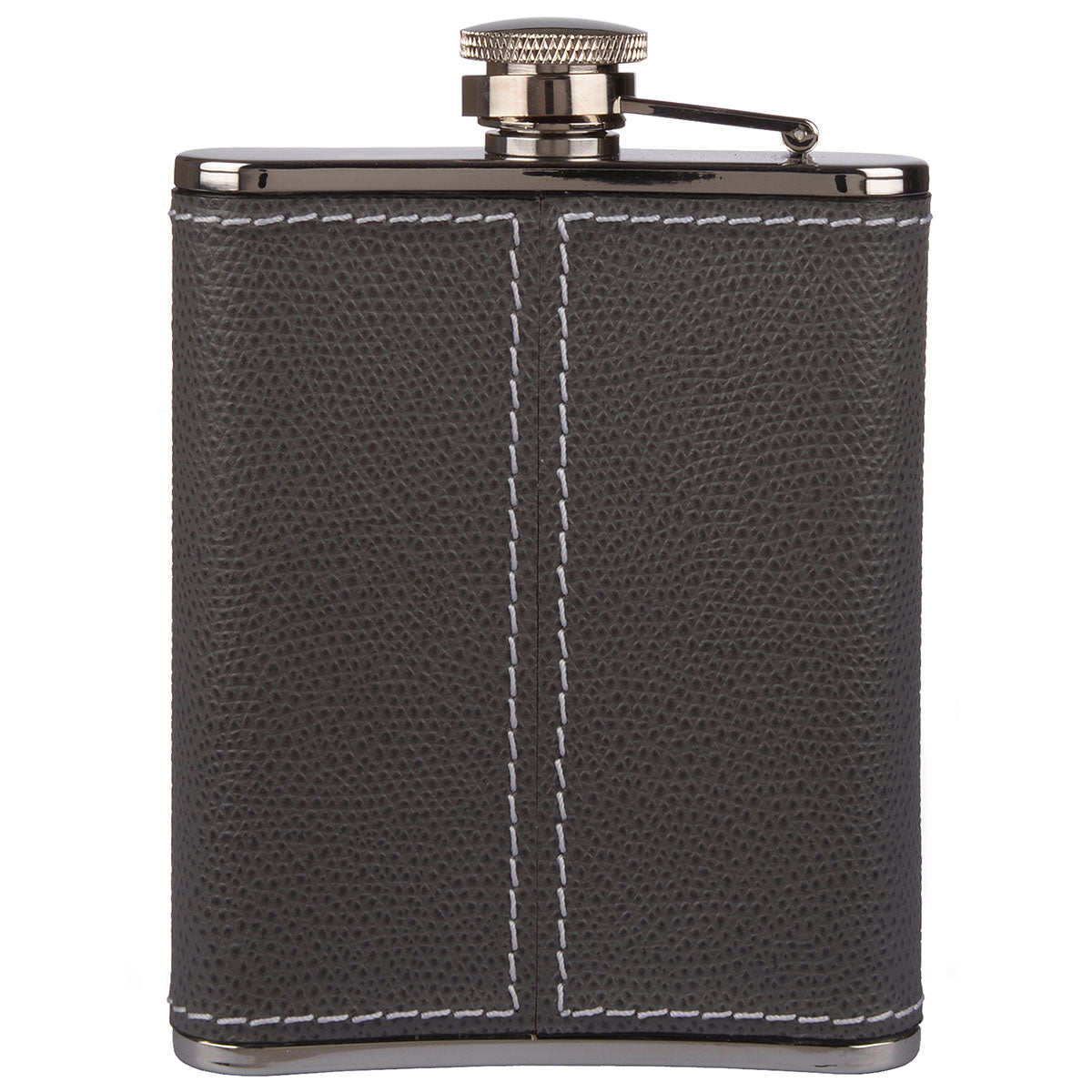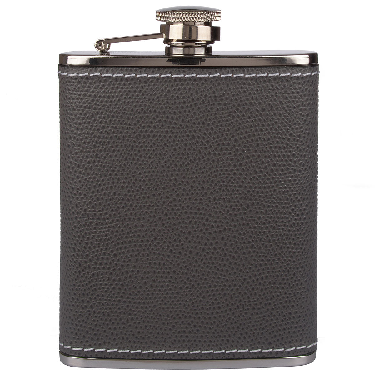 Diese edle Taschenflasche von GioBagnara ist ein unverzichtbarer Begleiter für jeden Gentleman. Der stilvolle Flachmann zum selber Befüllen besteht aus hochwertigem Edelstahl, der in feinstes italienisches Leder in der Farbe Graphit (Grau) gefasst ist. Er hat ein Fassungsvermögen von 100 ml und einen praktischen Drehbügel-Verschluss. In den Maßen 2,5 x 9 x 10 cm kann die kompakte Flasche problemlos verstaut und transportiert werden. Ob nach einer siegreichen Runde Golf, auf der Jagd oder beim nächsten Segeltörn - die exklusive Taschenflasche von GioBagnara kommt immer gut an. Ein besonderes Geschenk für Männer mit Abenteuerlust und gutem Geschmack.