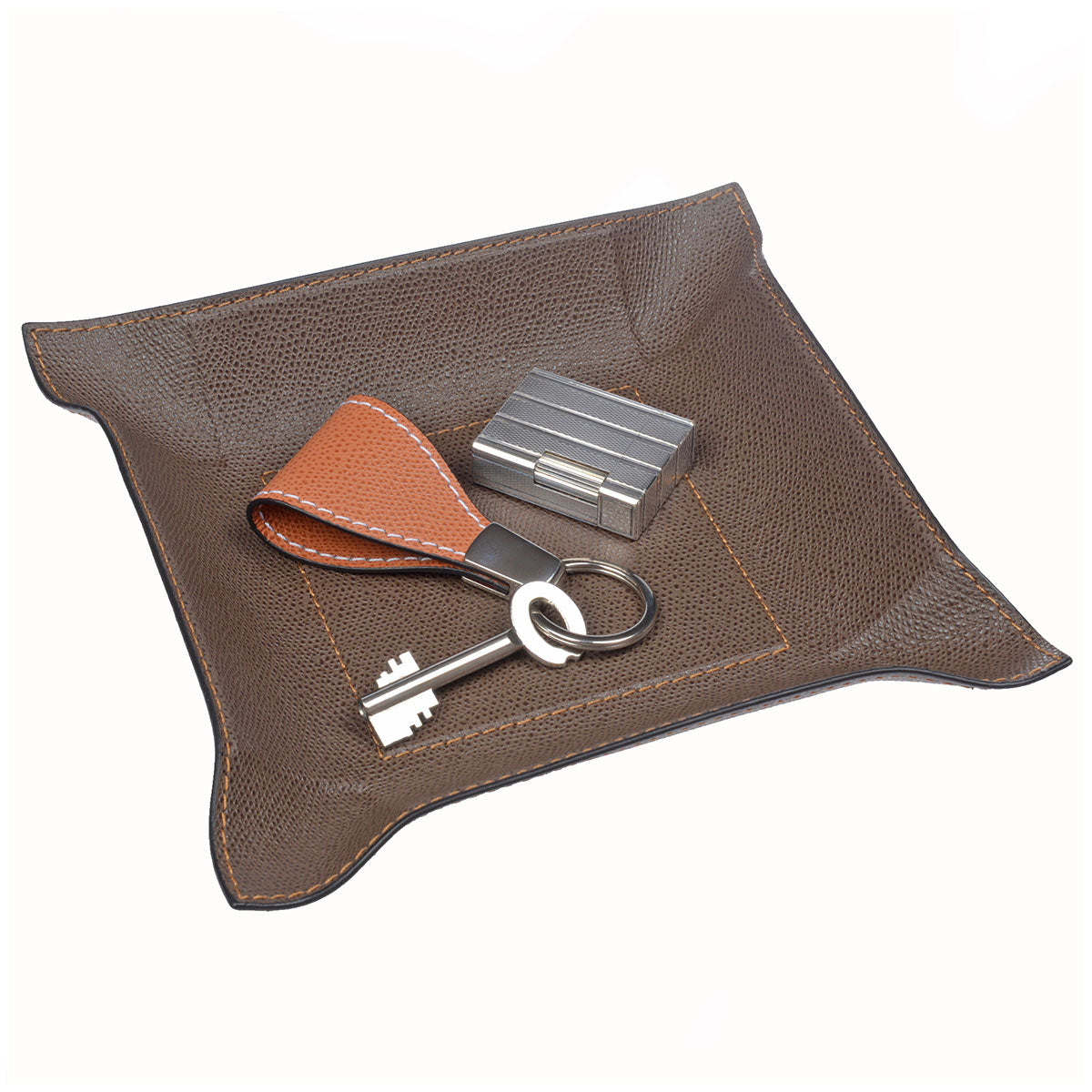 Betritt man einen Raum, sind es die kleinen, auf den ersten Blick oft unscheinbaren Dinge und Details, die Atmosphäre schaffen und Stimmung erzeugen. Doch erst durch diese dekorativen Kleinigkeiten und liebevoll angeordneten Ergänzungsstücke erhält das Zuhause eine Persönlichkeit! Arrangieren Sie beispielsweise den Taschenleerer JACK im Eingangsbereich als Schlüsselablage, im Bad oder Schlafzimmer als Schmuckablage oder als Stiftablage auf dem Schreibtisch. Ein Taschenleerer sollte in keinem stilvollem Zuhause fehlen. Im Inneren des quadratischen Taschenentleerers ist eine biegsame Metallplatte eingearbeitet, sodass Sie die Ränder nach Ihren Vorstellungen anpassen können. Der 20 x 20 cm große Taschenleerer wird ausschließlich aus italienischem Leder von höchster Qualität mit einem speziellen Schutz gegen Kratzer und Wasser gefertigt.