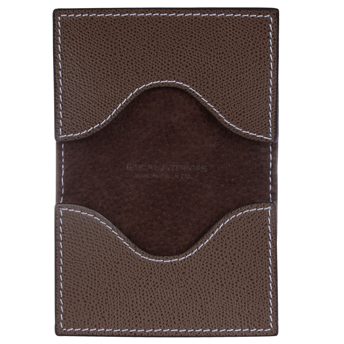 Visitenkartenetui aus Leder. Nicht nur Visitenkarten finden ihren Platz in dem hochwertigen Lederetui! Auch alle gängigen Kartenformate wie Kreditkarten, Ausweis oder Führerschein können in diesem schlanken Lederetui in Form einer Briefhülle aufbewahrt werden. Einen optischen Kontrast zum braunen Leder bildet die helle Ziernaht. Ein Etui, das sowohl privat wie auch im Business überzeugt.