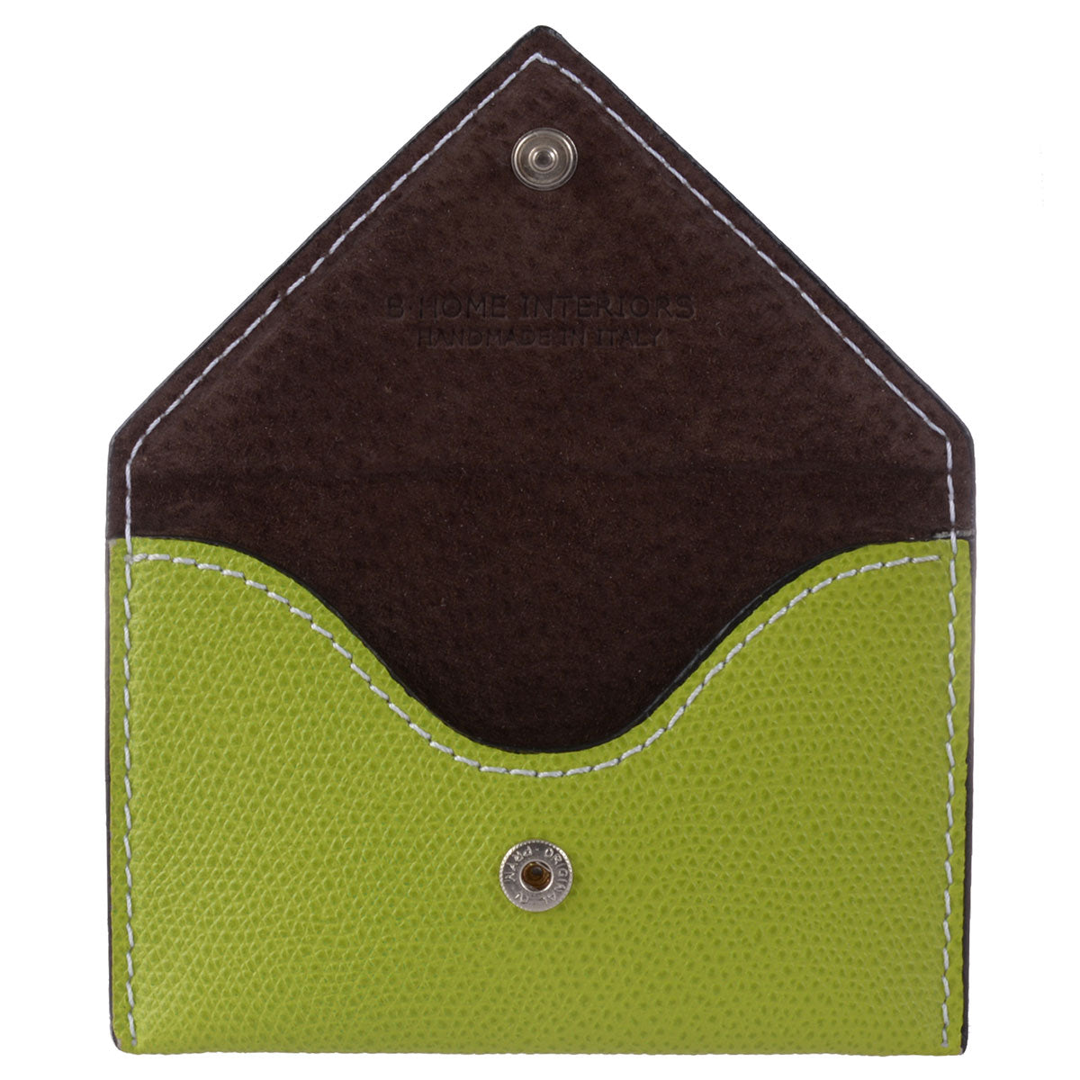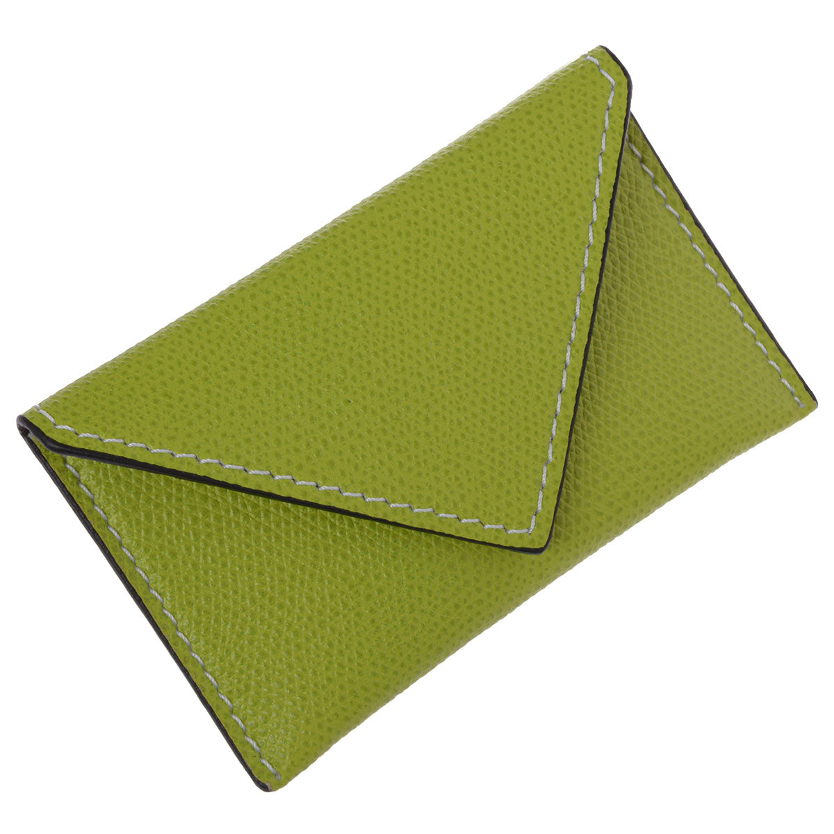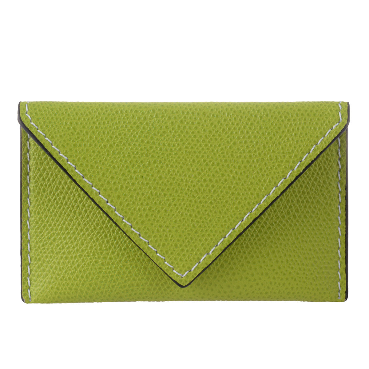 Visitenkartenetui aus Leder. Nicht nur Visitenkarten finden ihren Platz in dem hochwertigen Lederetui! Auch alle gängigen Kartenformate wie Kreditkarten, Ausweis oder Führerschein können in diesem schlanken Lederetui in Form einer Briefhülle aufbewahrt werden. Einen optischen Kontrast zum grünen Leder bildet die helle Ziernaht. Ein Etui, das sowohl privat wie auch im Business überzeugt.
