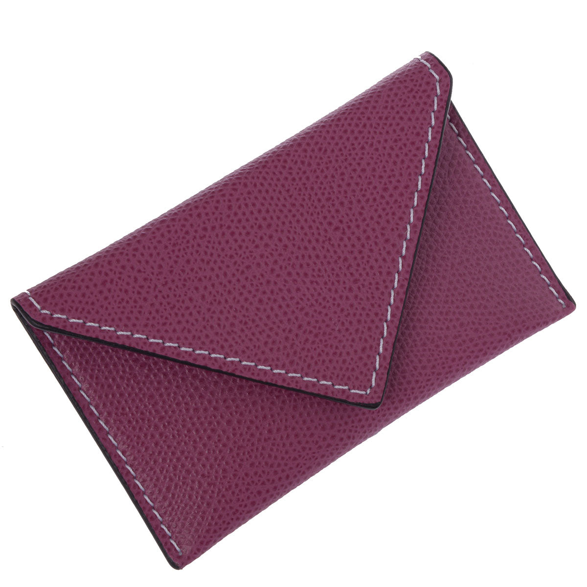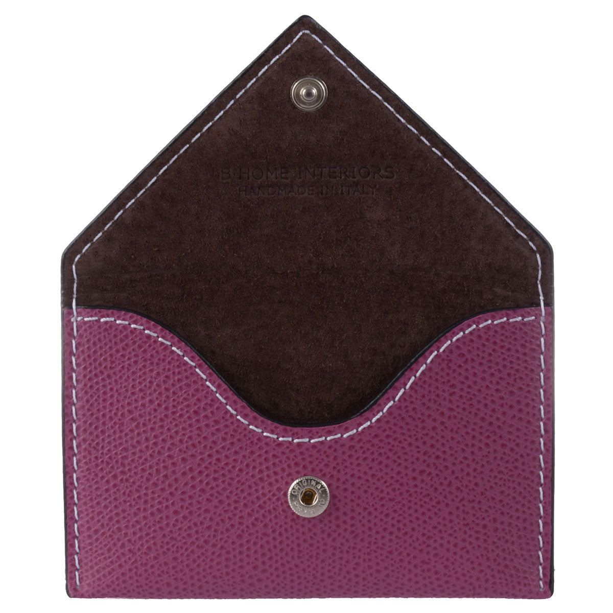 Visitenkartenetui aus Leder. Nicht nur Visitenkarten finden ihren Platz in dem hochwertigen Lederetui! Auch alle gängigen Kartenformate wie Kreditkarten, Ausweis oder Führerschein können in diesem schlanken Lederetui in Form einer Briefhülle aufbewahrt werden. Einen optischen Kontrast zum lila Leder bildet die helle Ziernaht. Ein Etui, das sowohl privat wie auch im Business überzeugt.