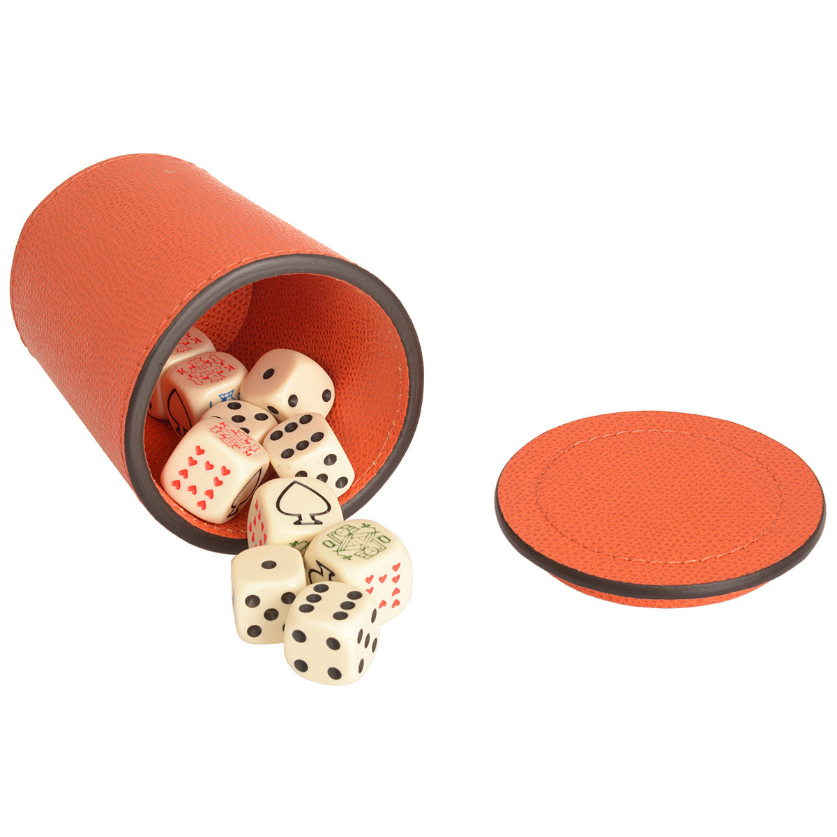 Exklusiver als mit dem handgefertigtem Würfelbecher aus Leder kann man nicht spielen. Der Würfelbecher wird mit fünf Pokerwürfeln und fünf Standardwürfeln geliefert. Abgerundet wird das Spielvergnügen durch den passenden Lederdeckel. Der Würfelbecher wird in der italienischen Ledermanufaktur Giobagnara von Hand gefertigt und in einer Geschenkebox geliefert.