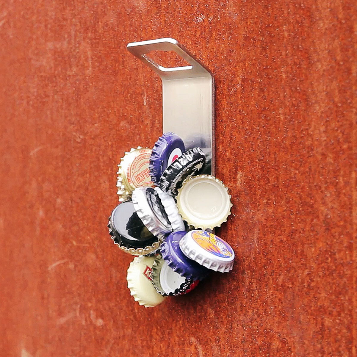JOHNNY CATCH – magnetisch, formschön und praktisch zugleich. Der Flaschenöffner ist aus 100% Edelstahl und kommt ohne Schrauben und Dübel an die Wand. Ein hochwertiges doppelseitiges Klebeband von 3M sorgt für sicheren Halt auf sämtlichen Untergründen, auch auf sehr unebenen. Der in Deutschland hergestellte Flaschenöffner fängt bis zu 20 Kronkorken auf.