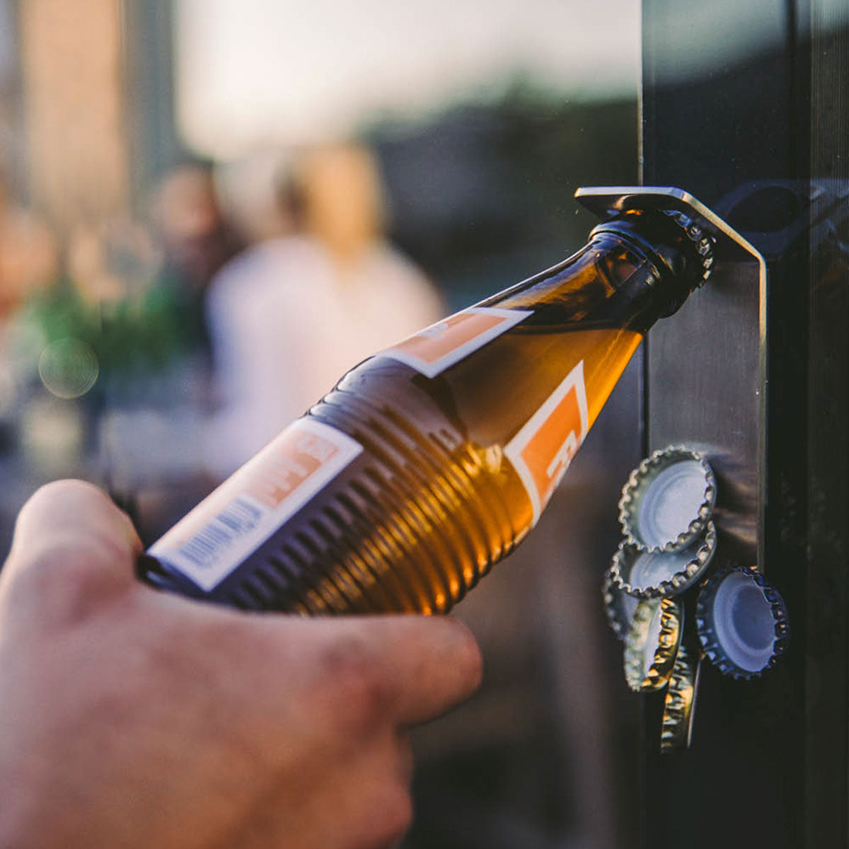 Der praktische Flaschenöffner für die Wand findet stilsicher seinen Platz neben dem Kühlschrank, in der Werkstatt, auf dem Boot, im Bauwagen, im Vereinsheim, in der Küche, auf der Terrasse, in der Bar - einfach überall wo eine Wand ist und Flaschen mit Kronkorken.