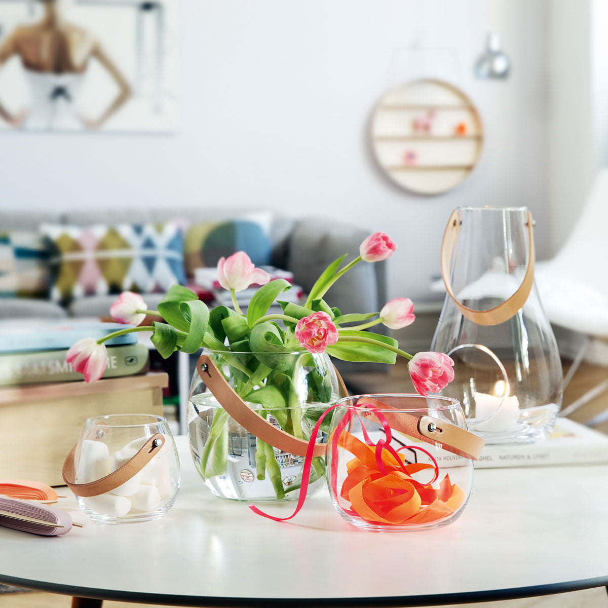 Dekorativ und multifunktional. Die multifunktionale Glasschale mit Lederhenkel aus der Serie Design with Light ist ein echter Alleskönner. Der klare skandinavische Look lässt viel Dekorationsspielraum. Ob auf dem Schreibtisch als Aufbewahrung für Stifte und Pinsel oder als Windlicht auf der Anrichte. Zum Servieren von Snacks oder zum Aufbewahren von Sammel - oder Dekoobjekten. Auch für Blumen und Saisondeko bestens geeignet.