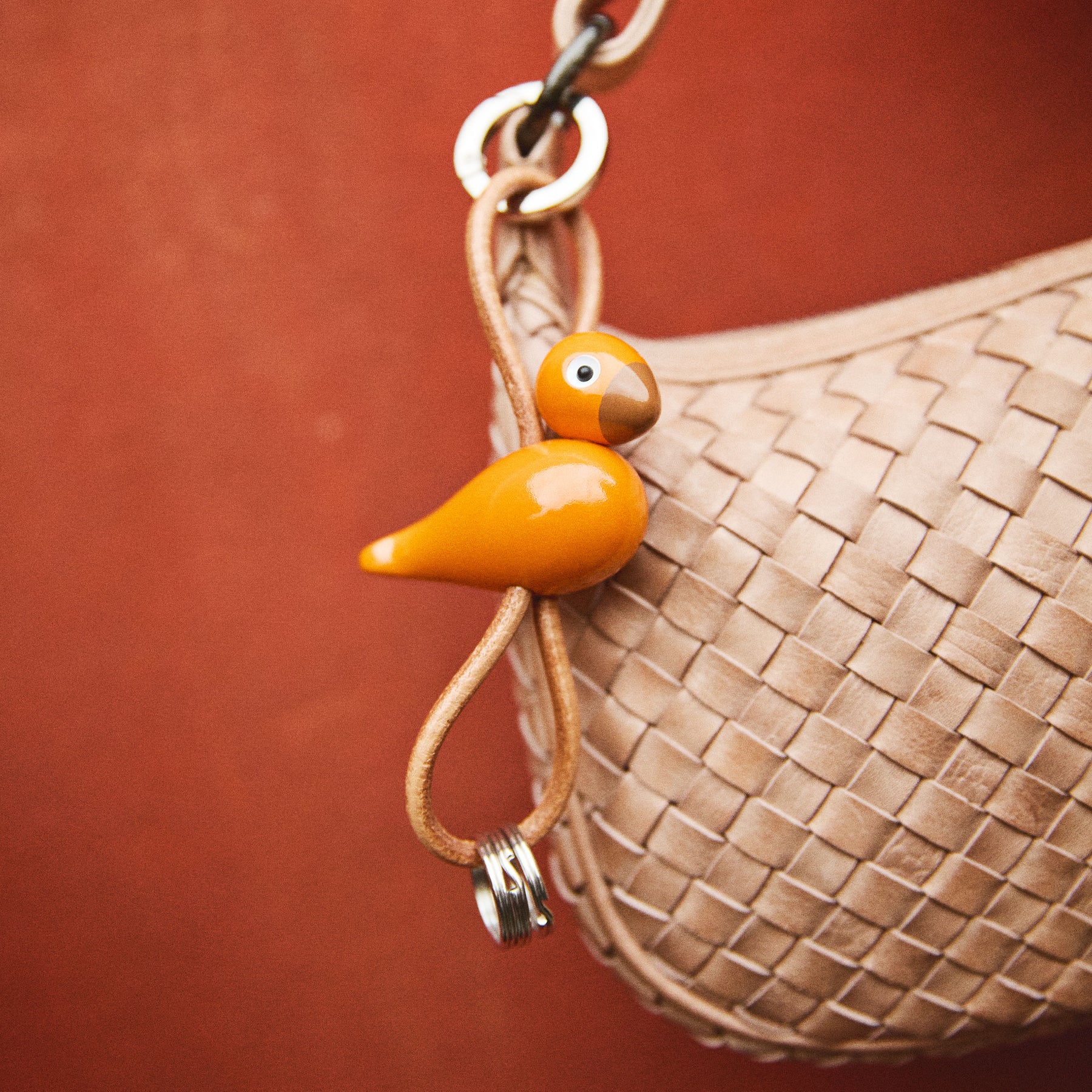 Die kleine Singvogel-Figur in orange wird aus FSC®-zertifiziertem Buchenholz gefertigt und überzeugt durch ihre detailreiche Verarbeitung. Ergänzt wird das Design durch eine verstellbare Kordel aus echtem Leder, die dem Anhänger eine besonders edle Note verleiht.