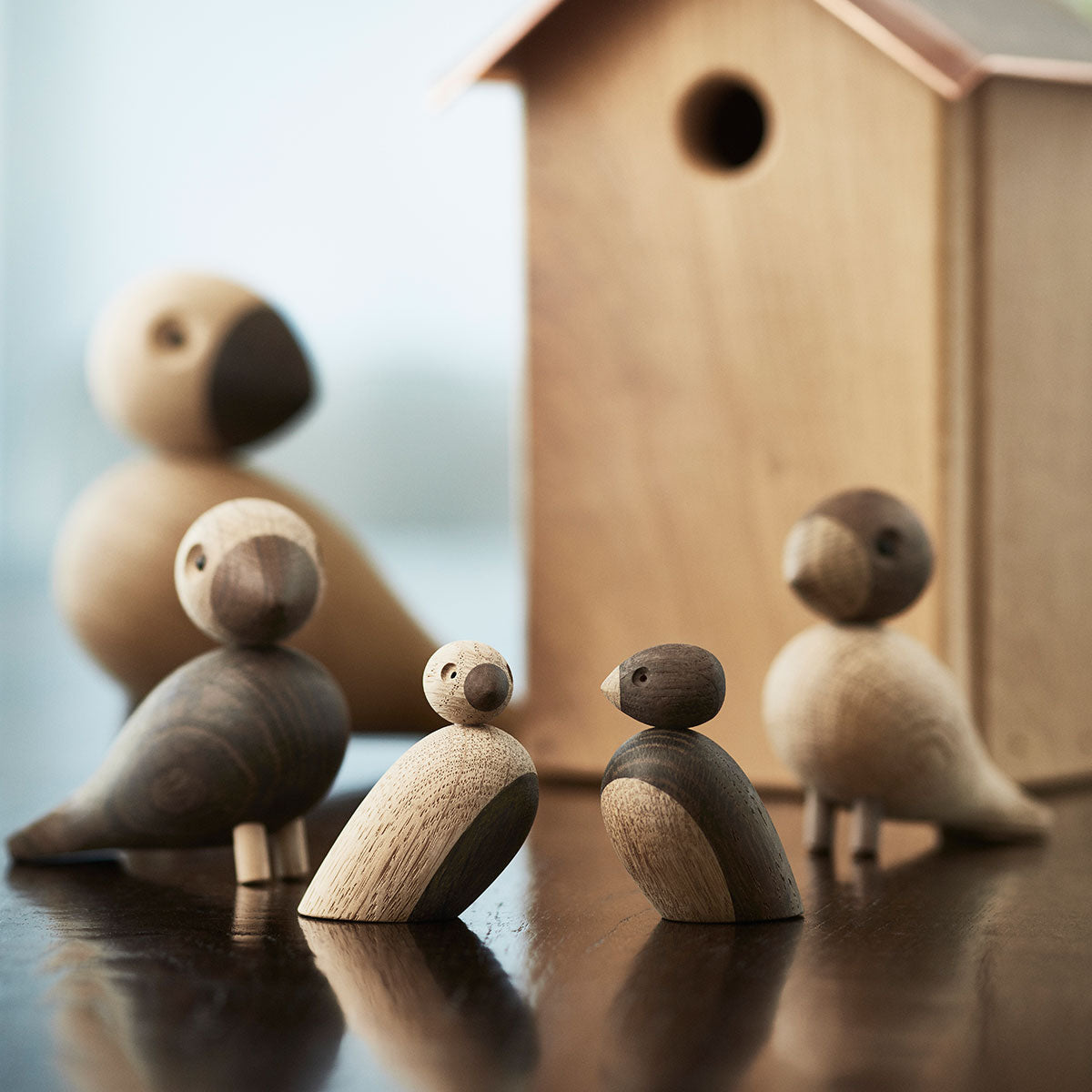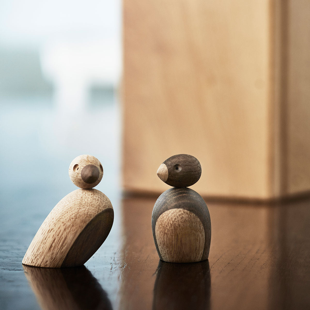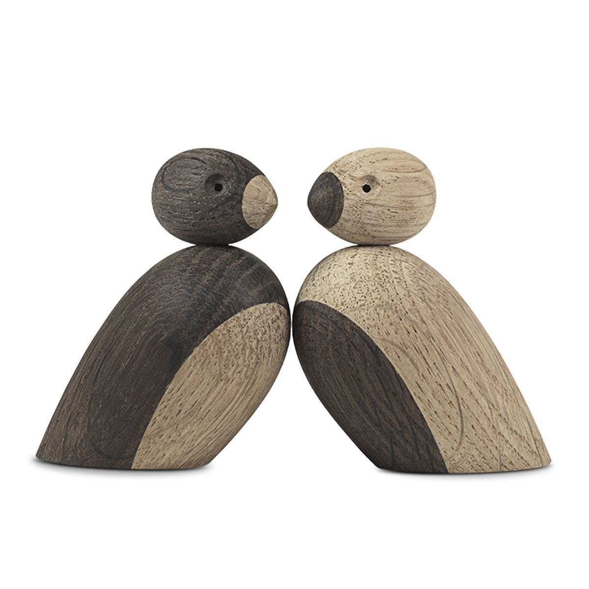 Und es gibt sie doch, die wahre und immer anhaltende Liebe. Ob Dichter oder Denker, Musiker oder Designer, bereits seit Jahrhunderten dient die Liebe als Inspiration für die klassischsten Werke unserer Zeit. Auch Designer Kay Bojesen hat sich dem Thema in Form seiner Lovebirds angenommen. Das niedliche Spatzenpaar ist ein Symbol für alle Liebenden und Menschen, die an die ewige Liebe glauben. Klar, die hölzernen Dekofiguren müssen nicht Familie, Job und Alltag unter einer Hütte bekommen und leben auch nicht in einer Großstadt mit Hektik und Stress, aber sie dienen als ständige Erinnerung daran, was wirklich zählt im Leben – die Menschen, die uns auf unserem Weg begleiten. Durch die beweglichen Köpfe können sich die Liebesvögel zu jeder Zeit und aus jeder Position heraus verliebt anschauen. Im Boden der beiden Vögel befindet sich ein Magnet, der ihnen erlaubt, zusammen mit anderen Spatzen auf einer Metallstange zu verweilen. Das Spatzenpärchen von Kay Bojesen ist ein wunderbares Geschenk für Verliebte zur Verlobung, zur Hochzeit, zum Valentinstag oder einfach mal so. Geliefert werden die dekorativen und hochwertig verarbeiteten Holzvögel natürlich als Paar.
