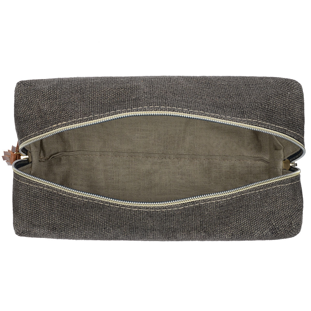 Sie sind auch bei der Wahl Ihrer Kulturtasche konsequent nachhaltig? Dann ist der Kulturbeutel KARLIE von Dorothee Lehnen genau richtig für Sie. Die Waschtasche besteht aus 100% Leinen, das in Österreich umweltschonend gewebt wird. Das Material ist robust und hat eine grobe Oberfläche, welche den lässig natürlichen Look der KARLIE komplettiert. Im Inneren der Kulturtasche befindet sich ein geräumiges Hauptfach, welches mit Leinenstoff gefüttert ist. Zwei kleine Lederquasten am Zwei-Wege-Reißverschluss sorgen für ein bequemes Öffnen und Schließen. Eine Lederlasche an der Außenseite ermöglicht es, das Reiseutensil einfach zu tragen und platzsparend aufzuhängen. Dank seiner Größe von L 25 cm x B10 cm x H13 cm findet alles, was man unterwegs und im Urlaub benötigt seinen Platz in dem schönen Reiseaccessoire. Aber auch beim Gang ins Spa oder die Sauna und im heimischen Badezimmer macht der stilvolle Kulturbeutel stets eine gute Figur.