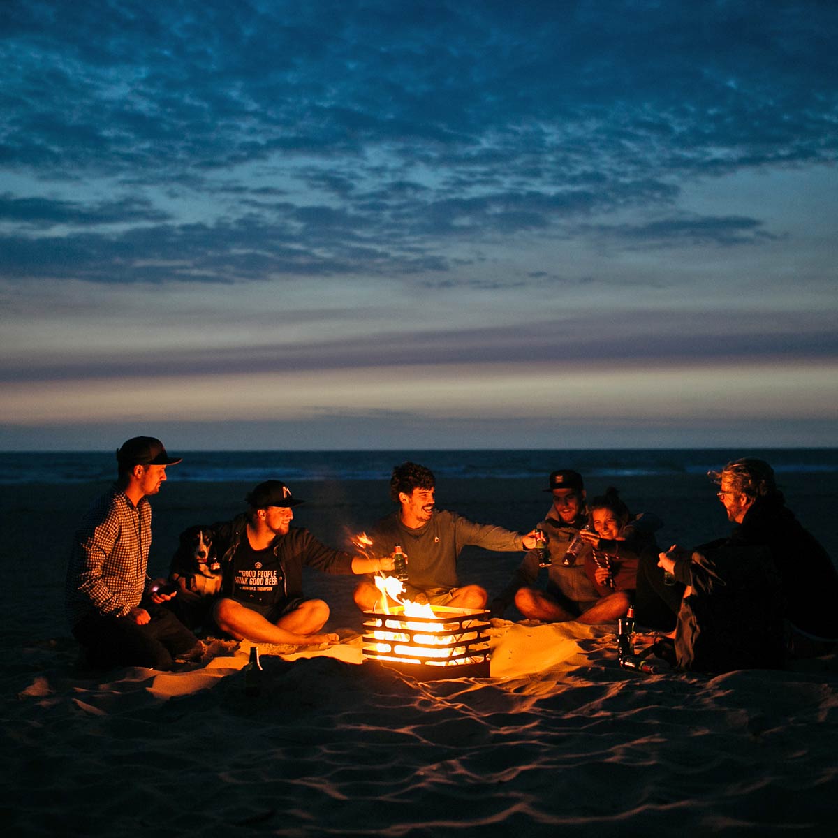Das Feuer sieht nicht nur fantastisch aus, wenn es nach oben und durch die Aussparungen scheint; es wärmt auch ein bisschen an kalten Abenden. Sehr schick wirkt das Ganze, wenn Sie zwei oder drei dieser Feuerkörbe mit Grill besitzen. So können Sie mehrere Leute mit Grillgerichten verwöhnen und anschließend an verschiedenen Punkten auf der Terrasse oder im Garten für ein lebendiges Licht sorgen. Wenn das Feuer ausgehen soll, drehen Sie den CUBE vorsichtig um. Die Feuerschale bleibt automatisch in der aufrechten Position. Somit decken Sie mit der Unterseite des CUBEs das Feuer ab. Da es keinen Sauerstoff mehr bekommt, geht es aus.