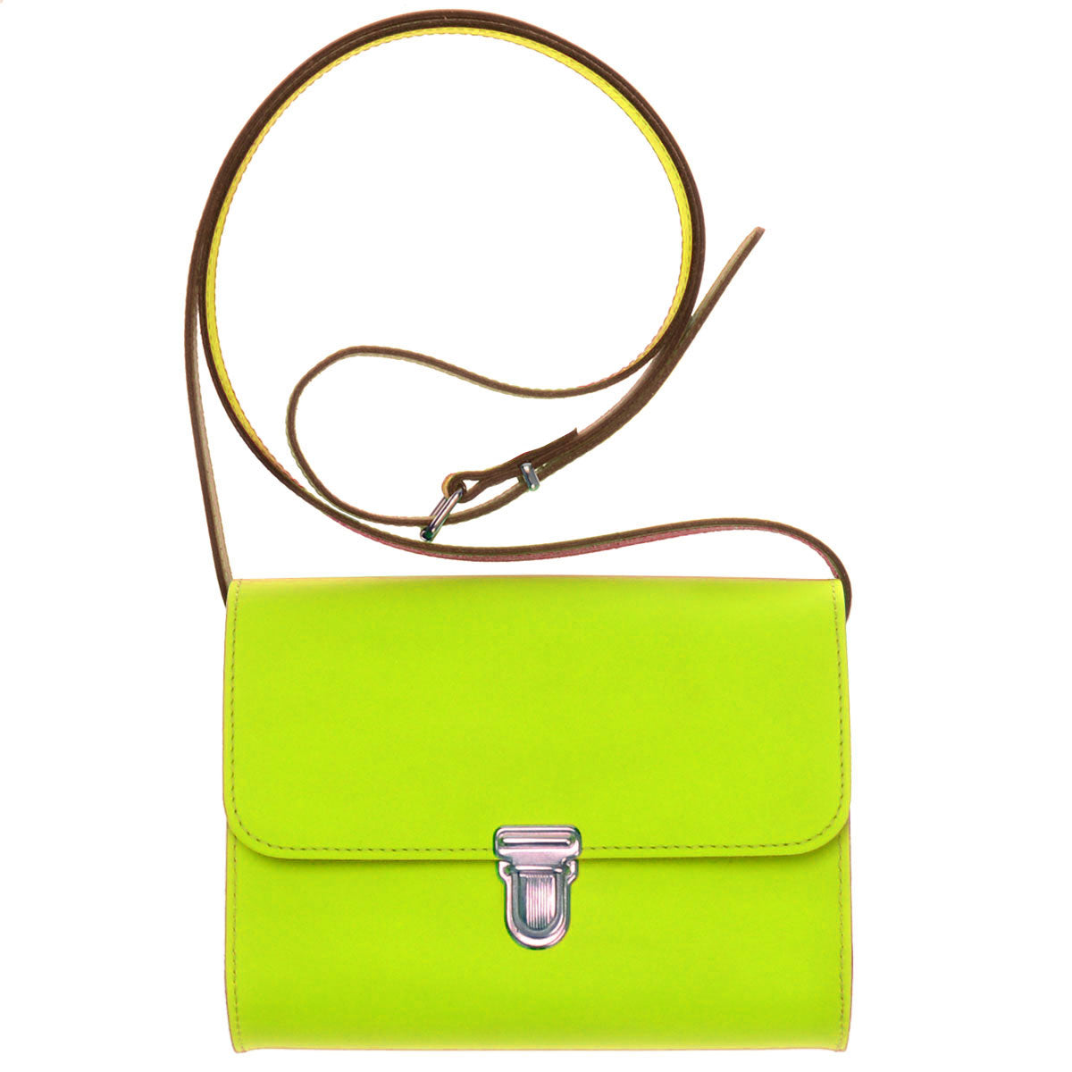 Die Siebzigerjahre waren Vorbild für diese modische Brottasche. Die neongelbe Brottasche aus Leder der Ledermanufaktur papoutsi ist eine handgefertigte Cross Body Tasche im Retro-Look für viele Gelegenheiten. Die schlichte Umhängetasche überzeugt ohne viel Schnörkel und Schnickschnack und eignet sich im Alltag, aber auch als legere Abendtasche. Sie ist aus stabilem Rindsleder mit praktischem Steckverschluss gefertigt, hat einen verstellbaren Tragegurt und kommt in den Maßen 20 x 15,5 x 6,5 cm. Die kompakte Damentasche ist genau das richtige Accessoire für alle, die ihre Brote stilsicher zur Arbeit bringen wollen und jene, die es bevorzugen nur das Wichtigste mitzuführen. Die Berliner Ledermanufaktur papoutsi steht für eine bewährte sowie hochwertige Verarbeitung von ausgewähltem Leder mit europäischer Herkunft.
