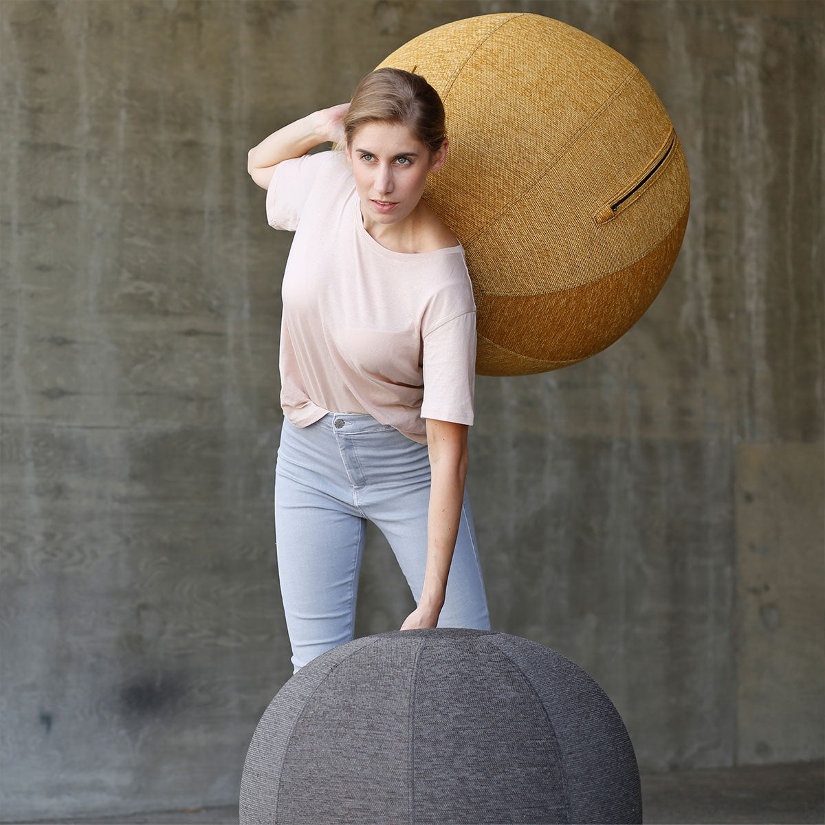 Sitzbälle oder Gymnastikbälle kennt man als knallbunte, klebrige PVC Bälle, die wohl die meisten von uns lieber verstecken, als offen in der Wohnung oder im Office liegen lassen würden. Schaffen Sie Bewegung am Arbeitsplatz mit einem Design Sitzball von VLUV. Der Sitzball hat einen angenehmen Stoffbezug, der sich auch optisch perfekt in geschmackvoll eingerichtete Büros und Wohnzimmer integrieren lässt. Durch den weichen, warmen und dennoch strapazierfähigen Stoffbezug ist ein gesundes und stilvolles Sitz-, Sport- und Spielmöbel entstanden. Der Sitzball Stov ist in zwei Größen lieferbar, so wird optimal zur Kräftigung der Rückenmuskulatur und zu einem gesundem Sitzen beigetragen. Man kann ihn auch für viele sportliche Übungen einsetzen, z.B. bei der Gymnastik, dem funktionalen Training, bei Yoga oder Pilates. Oder, man kann auch einfach nur mit dem Design Sitzball Herumtollen und ihn dann als Eyecatcher im Raum liegen lassen.
