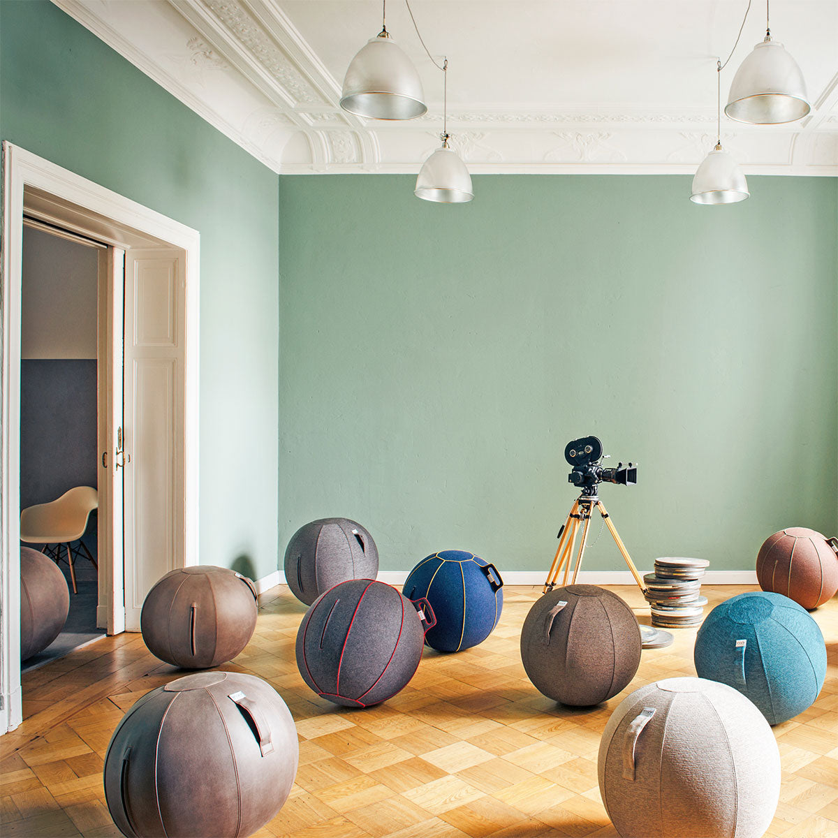 Sitzbälle oder Gymnastikbälle kennt man als knallbunte, klebrige PVC Bälle, die wohl die meisten von uns lieber verstecken, als offen in der Wohnung oder im Office liegen lassen würden. Schaffen Sie Bewegung am Arbeitsplatz mit einem Design Sitzball von VLUV. Der Sitzball hat einen angenehmen Stoffbezug, der sich auch optisch perfekt in geschmackvoll eingerichtete Büros und Wohnzimmer integrieren lässt. Durch den weichen, warmen und dennoch strapazierfähigen Stoffbezug ist ein gesundes und stilvolles Sitz-, Sport- und Spielmöbel entstanden. Der Sitzball Stov ist in zwei Größen lieferbar, so wird optimal zur Kräftigung der Rückenmuskulatur und zu einem gesundem Sitzen beigetragen. Man kann ihn auch für viele sportliche Übungen einsetzen, z.B. bei der Gymnastik, dem funktionalen Training, bei Yoga oder Pilates. Oder, man kann auch einfach nur mit dem Design Sitzball Herumtollen und ihn dann als Eyecatcher im Raum liegen lassen.