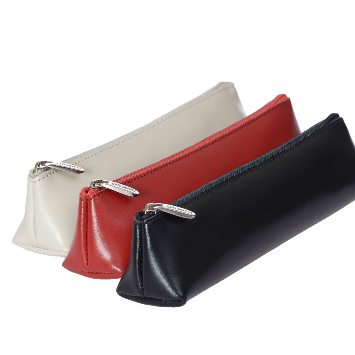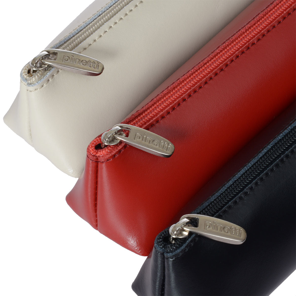 Pinetti Lederetui für Stifte oder Kosmetik. Das Lederetui Triangular wird in reiner Handarbeit aus feinstem Kalbsleder von der Firma pinetti gefertigt. Ein solider Reißverschluss bewahrt alle Utensilien stilsicher auf. Das Etui ist ein formschöner schlichter Klassiker bei dessen Herstellung das italienische Unternehmen, mit Sitz in Norditalien, großen Wert auf geringe Umweltbelastung und Energieeinsparung legt. So werden beispielsweise nur Häute von Rindern verwendet, die auch als Lebensmittel Verwendung finden. Gerbereien, von denen pinetti das Leder bezieht, müssen strenge ökologische Standards erfüllen. Dadurch sind pinetti-Produkte keine Massenware; denn sie sind im Einklang mit der Natur gefertigt sowie nützlich, edel und außergewöhnlich. Das Lederetui Triangolo überzeugt nicht nur durch die Art der Fertigung, sondern ebenfalls als Multifunktionstalent. Es kann sowohl als Stifte- als auch Kosmetiketui genutzt werden. Aber auch andere kleine Dinge des täglichen Lebens wie Schlüssel aufbewahren. Auf dem Schreibtisch oder in der Handtasche macht das Etui eine gute - dreieckige - Figur und sorgt dafür, dass alles an seinem richtigen Platz und sofort griffbereit ist!