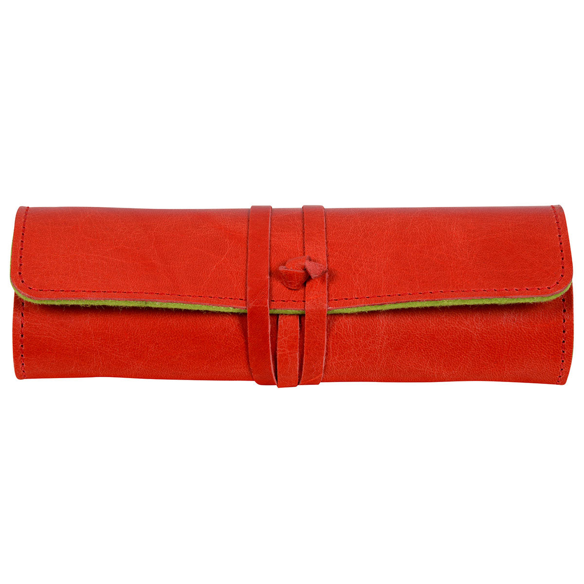 Handgefertigte Schmuckrolle Sophia aus hochwertigem Leder mit optimal schützendem Innenfutter aus Wollfilz. Sophia ist eine praktische wie stilvolle Alternative zum Schmuckkoffer und vom Aufbau her ähnlich einer Kulturrolle: eine flache Tasche, die sich zusammenrollen und verschließen lässt. Ideal zur Schmuckaufbewahrung auf Reisen und im Urlaub. Im Inneren bietet die Schmuckrolle ein Reißverschlussfach, eine Ohrringleiste und eine Haltevorrichtung für Ringe. Verschlossen wird die 18 x 25 cm große Schmuckrolle der Ledermanufaktur mit einem Kordelverschluss. Hergestellt in Deutschland.