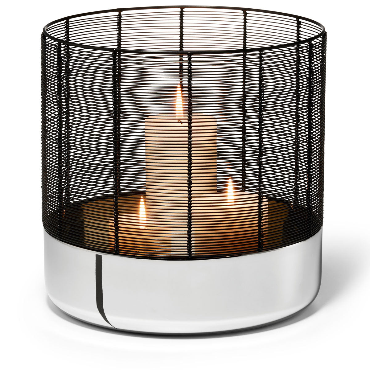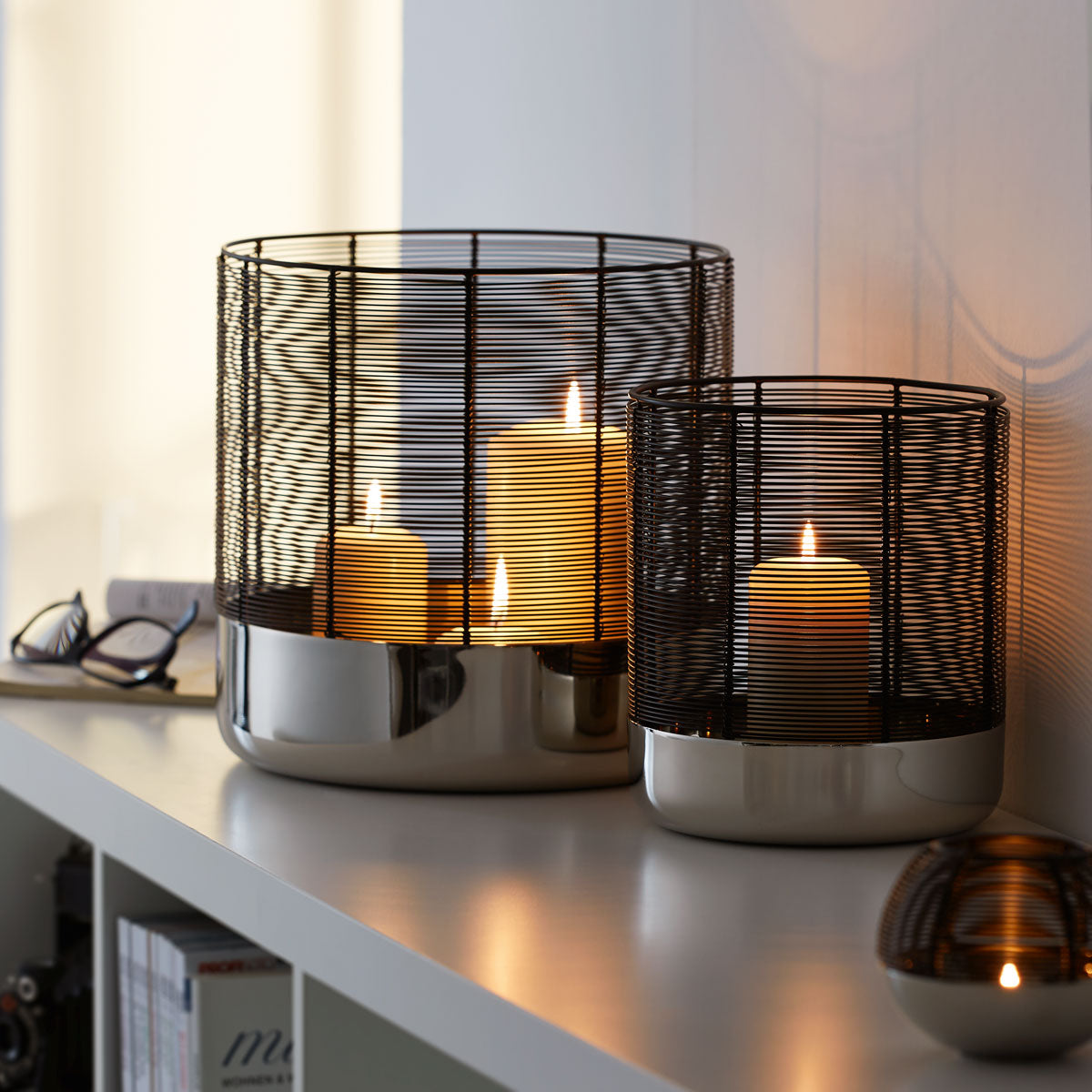 Mit dem exklusiven Windlicht LUNA von Philippi beweisen Sie Stil. Das elegante Zusammenspiel zwischen hochglanzpoliertem Nickel und handgewickeltem, pulverbeschichtetem Stahldraht sorgt für einen tollen Blickfang sowohl im Innen- als auch Außenbereich. Gleich mehrere Teelichter und Kerzen finden bequem ihren Platz im Inneren des Windlichts und tauchen jeden Raum im Nu in ein wunderbar gemütliches Licht. Besonders schön finden wir hierfür eine Kombination aus drei unterschiedlich hohen Stumpenkerzen. Das puristische Wohnaccessoire ist in mehreren Größen erhältlich, zu jeder Jahreszeit einsetzbar und für beinahe jeden Wohnraum geeignet. LUNA ist zweifellos ein dekoratives Multitalent, dass Sie in Ihrem Zuhause nicht mehr missen wollen.