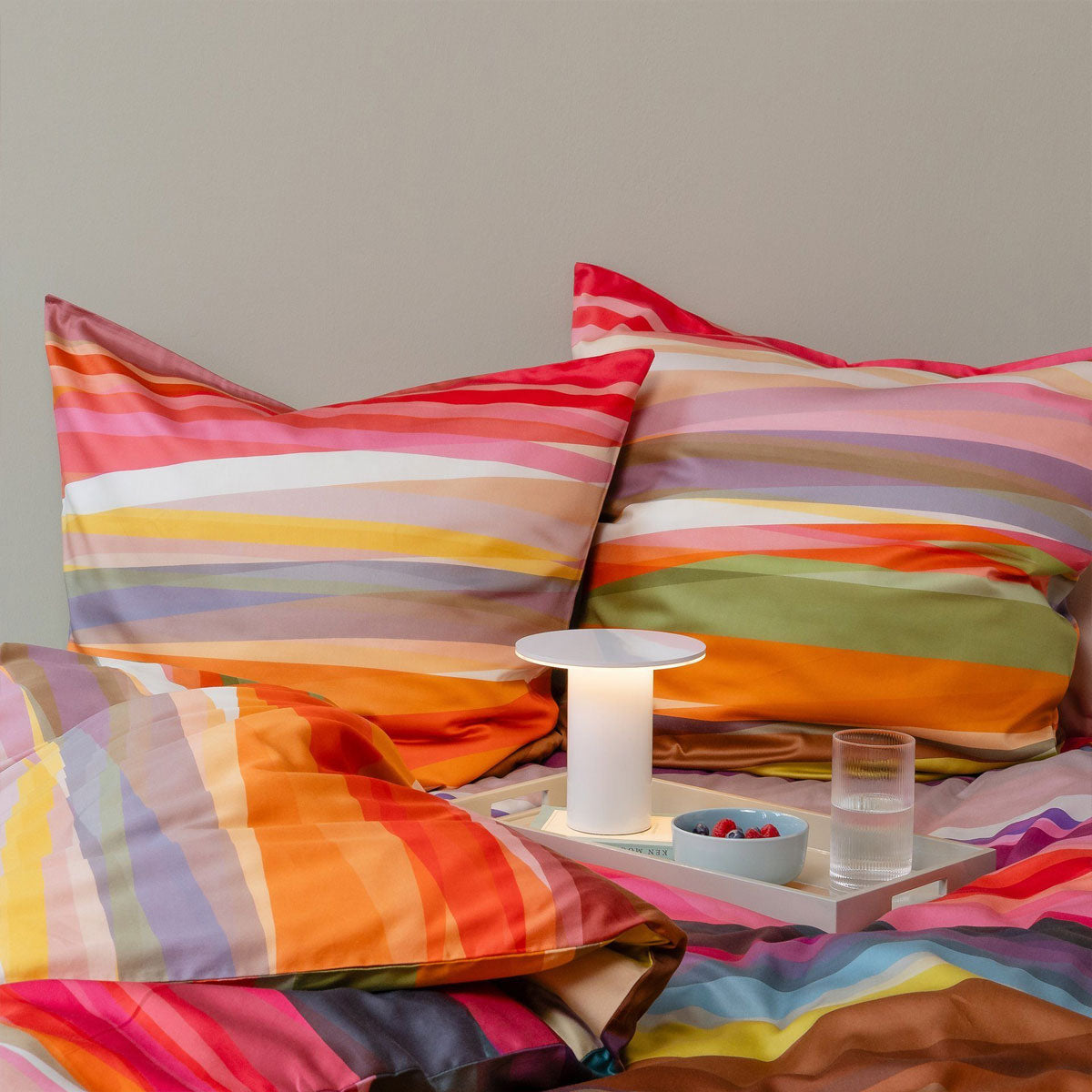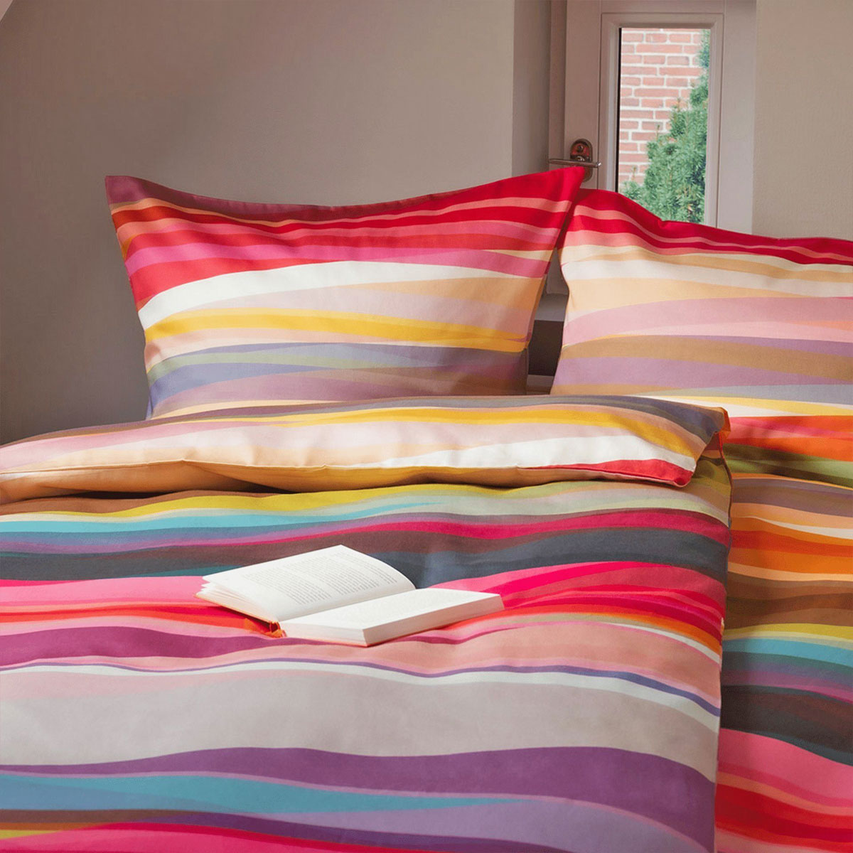 Leuchtende Farben auf seidig weicher Mako Satin Baumwolle machen Ihr Bett zur Wohlfühloase. Angenehm kühl im Sommer und schön warm im Winter - die hochwertige Baumwoll-Bettwäsche MATEO von Remember besticht mit einer besonders hohen Atmungsaktivität sowie Saugfähigkeit und sorgt so zu jeder Jahreszeit für ein gutes Schlafgefühl. Die glatte Oberfläche der Mako Satin Bettwäsche ist geschmeidig auf der Haut und verleiht Ihrer Bettgarnitur mit ihrer leicht glänzenden Optik einen ausgesprochen edlen Look. Das Remember Bettwäsche-Set Mateo ist in zwei Größen erhältlich und besteht aus einem Deckenbezug in 135 x 200 cm oder 155 x 220 cm und einem Kissenbezug in 80 x 80 cm. Die Bettbezüge werden mit einem verdeckten Reißverschluss geschlossen.