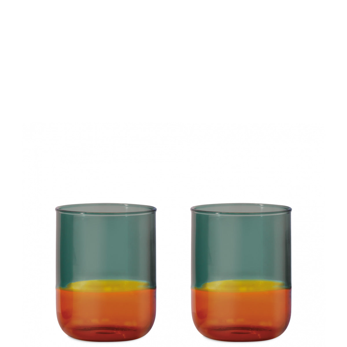 Dieses peppige Gläserset von Remember ist eine stilvolle Ergänzung auf jedem schön gedeckten Tisch. Hergestellt aus temperaturbeständigem Borosilikatglas sind die feinen Trinkgläser leicht und gleichzeitig stabil und eignet sich sowohl für kalte als auch warme Getränke. Sie können also bedenkenlos Wasser und Saft, aber auch Tee aus diesen hochwertigen Gläsern genießen. Einmal gefüllt, ändert sich die Farbgebung der zweifarbigen Wassergläser, sodass je nach Lichteinfall ein changierendes Farbenspiel entsteht. Tipp: Kombinieren Sie das Gläser 2er-Set mit der passenden Karaffe von Remember für ein harmonisches Gesamtbild passend zu Ihrer Tischdekoration.