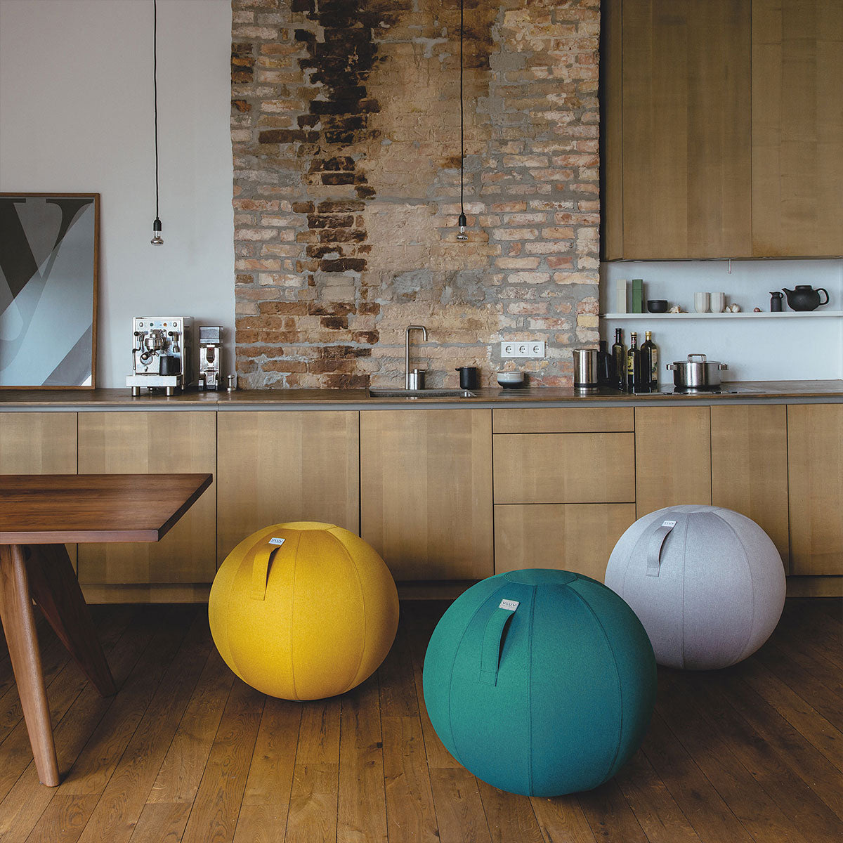 Sitzbälle oder Gymnastikbälle kennt man als knallbunte, klebrige PVC Bälle, die wohl die meisten von uns lieber verstecken, als offen in der Wohnung oder im Office liegen lassen würden. Schaffen Sie Bewegung am Arbeitsplatz mit dem Sitzball LEIV von VLUV. Der Sitzball hat einen angenehmen Bezug, der sich auch optisch perfekt in geschmackvoll eingerichtete Büros und Wohnzimmer integrieren lässt. Durch den weichen, warmen und dennoch strapazierfähigen Stoffbezug ist ein gesundes und stilvolles Sitz-, Sport- und Spielmöbel entstanden. Der Sitzball ist in zwei Größen lieferbar, so wird optimal zur Kräftigung der Rückenmuskulatur und zu einem gesundem Sitzen beigetragen. Man kann ihn aber auch für viele sportliche Übungen einsetzen, z.B. bei der Gymnastik, dem funktionalen Training, bei Yoga oder Pilates. Oder, man kann auch einfach nur mit ihm Herumtollen und ihn dann als Eyecatcher im Raum liegen lassen.