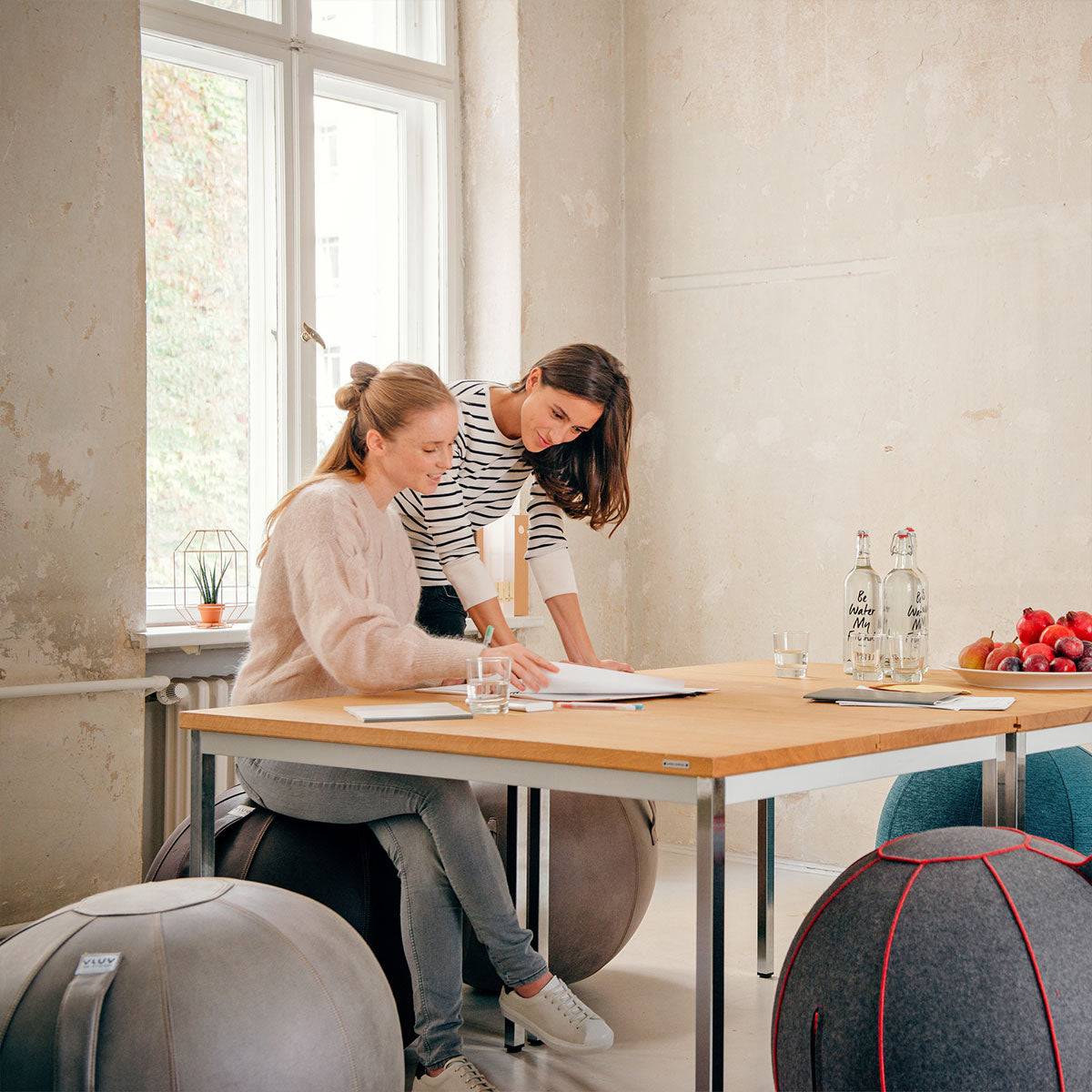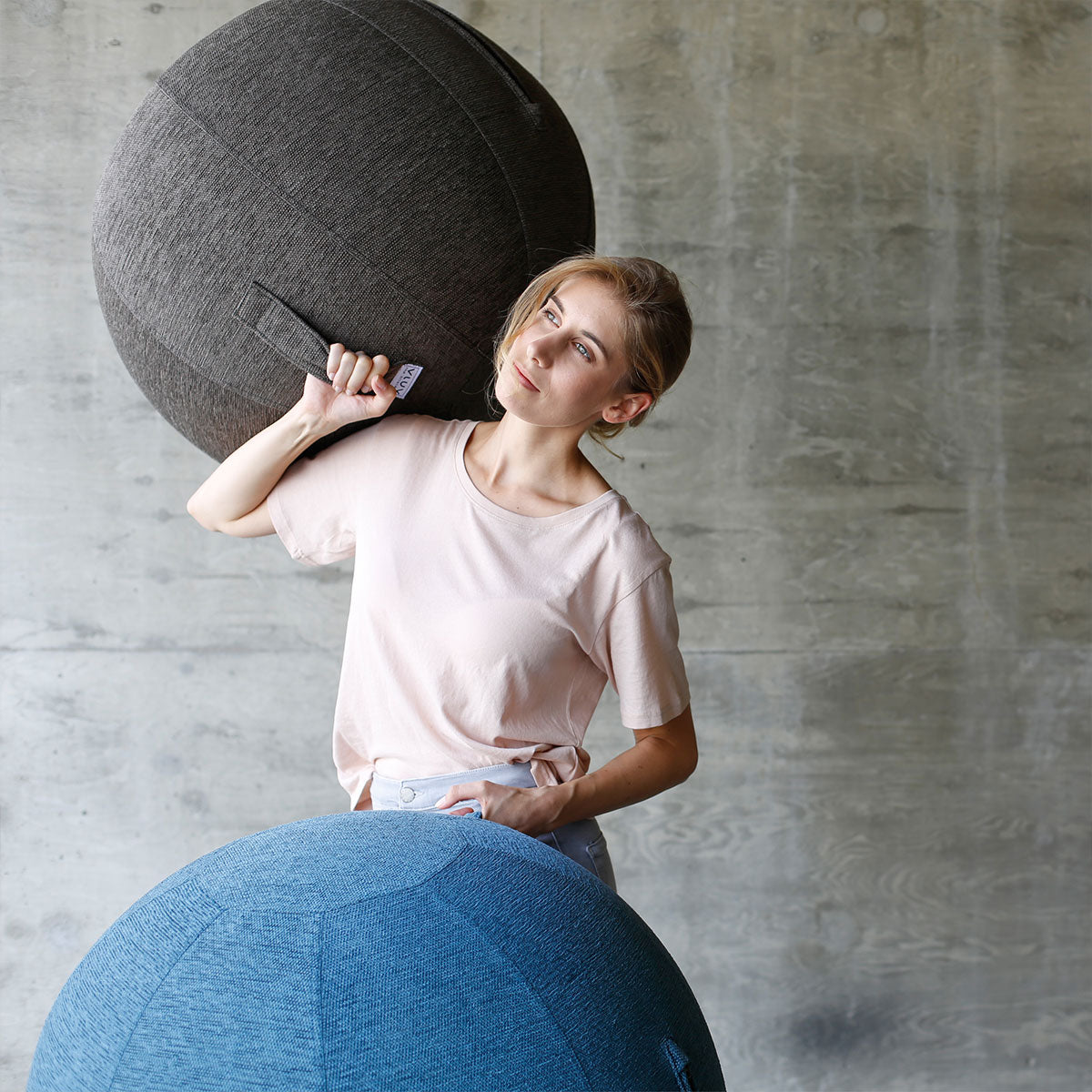 Sitzbälle oder Gymnastikbälle kennt man als knallbunte, klebrige PVC Bälle, die wohl die meisten von uns lieber verstecken, als offen in der Wohnung oder im Office liegen lassen würden. Schaffen Sie Bewegung am Arbeitsplatz mit einem Design Sitzball von VLUV. Der Sitzball hat einen angenehmen Stoffbezug, der sich auch optisch perfekt in geschmackvoll eingerichtete Büros und Wohnzimmer integrieren lässt. Durch den weichen, warmen und dennoch strapazierfähigen Stoffbezug ist ein gesundes und stilvolles Sitz-, Sport- und Spielmöbel entstanden. Der Sitzball Stov ist in zwei Größen lieferbar, so wird optimal zur Kräftigung der Rückenmuskulatur und zu einem gesundem Sitzen beigetragen. Man kann ihn auch für viele sportliche Übungen einsetzen, z.B. bei der Gymnastik, dem funktionalen Training, bei Yoga oder Pilates. Oder, man kann auch einfach nur mit dem Design Sitzball Herumtollen und ihn dann als Eyecatcher im Raum liegen lassen.