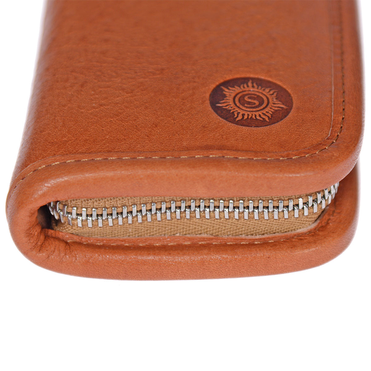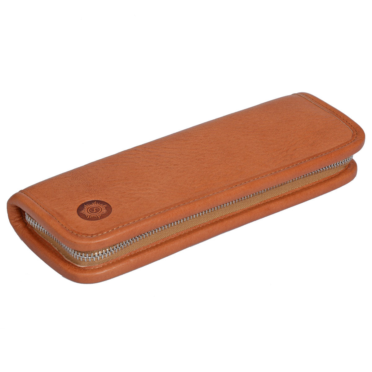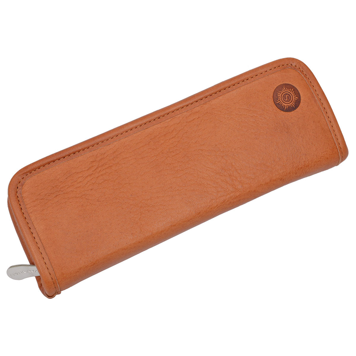 Das Sonnenleder Schreibetui ist von Hand gefertigt und pflanzlich gegerbt. Echtes Sonnenleder erkennen Sie an der Griffigkeit, der besonderen Farb- und Oberflächenstrukturen und am wohlriechenden Duft. Da das Leder seine natürliche Eigenschaften bewahrt hat, bedarf es nur wenig Pflege. Nachfetten oder andere Nachbehandlungen sind nicht nötig und können eher schaden.