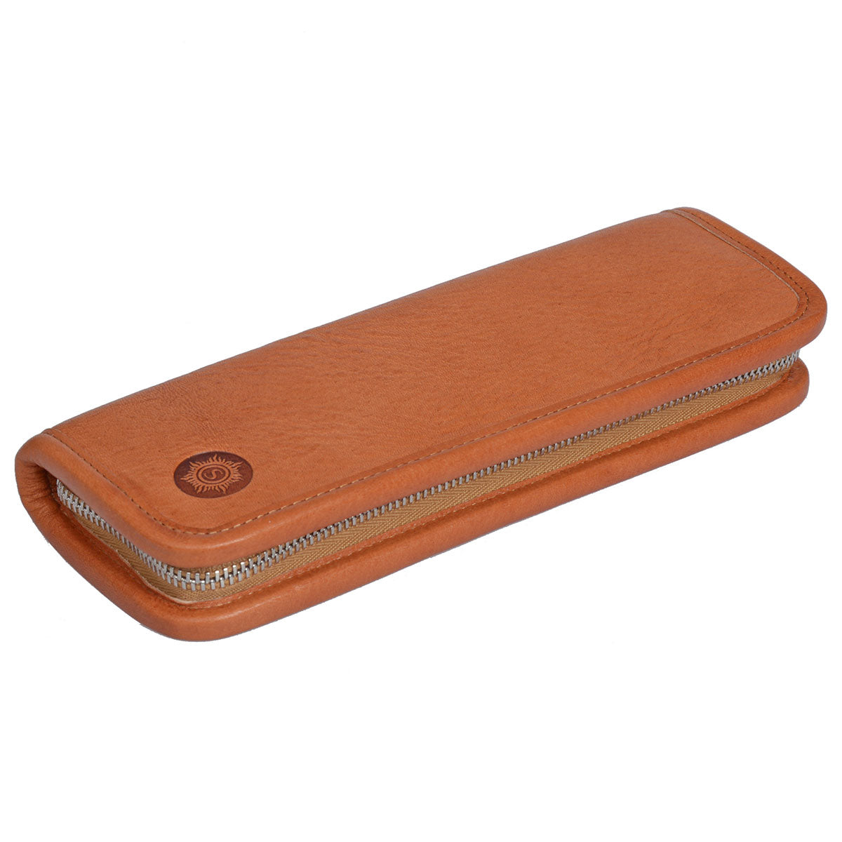 Das Sonnenleder Schreibetui ist von Hand gefertigt und pflanzlich gegerbt. Echtes Sonnenleder erkennen Sie an der Griffigkeit, der besonderen Farb- und Oberflächenstrukturen und am wohlriechenden Duft. Da das Leder seine natürliche Eigenschaften bewahrt hat, bedarf es nur wenig Pflege. Nachfetten oder andere Nachbehandlungen sind nicht nötig und können eher schaden.