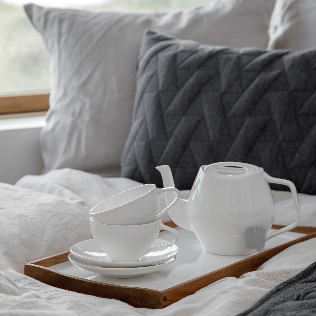 Ein Tablett kann einfach nur ein Tablett sein, oder aber es erfüllt seinen Zweck und ist dabei noch ein wunderschönes Designobjekt. Dies ist bei dem Tablett von ArchitectMade der Fall. Mit seinem grifflosen gebogenem Rahmen aus Teakholz und den liebevoll per Handarbeit verarbeiteten Kanten und Ecken stellt es ein stilvolles Accessoires dar. Besonders ist das Tablett Turning Tray durch die zweifarbige Oberfläche seiner Platte. Dadurch ist es von beiden Seiten verwendbar. Diesem Umstand verdankt das Tablett auch seinen Namen „Turning Tray“. Das Wendetablett ist mit der Oberfläche in dunkelrot, hellblau oder weiß erhältlich; die Rückseite ist immer schwarz. So ist es vielseitig einsetzbar, wirkt aber auch als reines Stilobjekt für sich alleine. Der dänische Designer und Architekt Finn Juhl, hauptsächlich durch seine Entwürfe für Möbel bekannt, entwarf dieses Accessoires 1956. Er hielt von verschnörkeltem Design nicht viel und so entstand das schlichte formschöne Tablett Turning Tray. Zeitlos und praktisch zugleich. Die Wiederauflage durch ArchitectMade basiert auf den Entwürfen von Finn Juhl.