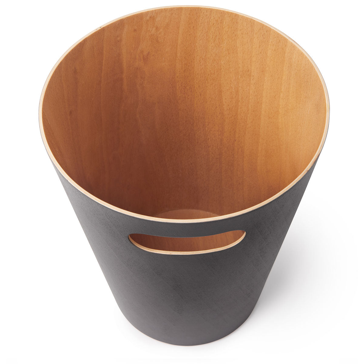 Woodrow von Umbra kann alles sein. Der Eimer ist ein wahres Multitalent und sieht dabei auch noch sehr edel aus. Gefertigt aus natürlich behandeltem Holz mit einer naturbelassene Innenseite und einer farbigen Außenseite überzeugt Woodrow durch ein klares und modernes Design. Er eignet sich zur Aufbewahrung von diversen Utensilien wie Zeitungen, Spielzeug, Handtüchern, Bastelmaterial oder Rollen großer Zeichnungen. Auch als Wäschesammler oder für Handarbeitszeug kann er eingesetzt werden. Zwei Tragegriffe sorgen für ein leichtes Transportieren, so kommt der Eimer immer wieder an anderen Orten als Wohnaccessoires zum Einsatz. Er hat eine Höhe von 28 cm und einem Durchmesser von 23 cm, er lässt sich unter jedem Schreibtisch verstauen und findet durch seine Größe auch in kleinen Räumlichkeiten einen Platz. Er ist widerstandsfähig, funktional, handlich und ist ein idealer Papierkorb im Büro, Homeoffice oder Kinderzimmer.