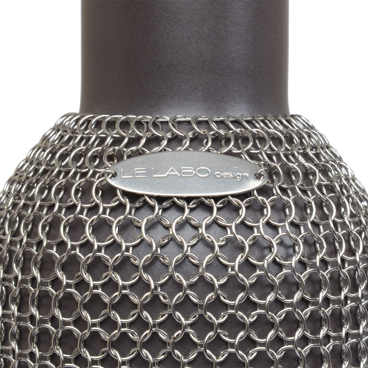 Extravagante Einzelstücke, die Ihr besonderes Gefühl für Ästhetik unterstreichen, bringen Leben und Persönlichkeit in Ihr Zuhause. Extravagant und faszinierend – das trifft auf die Dekovase grau mit Kettengeflecht von LE LABO design im höchsten Maße zu. Der experimentierfreudige und berühmte Pariser Designer Hervé Langlais und auch der Designer Paco Rabanne entwarfen für LE LABO design eine Vielfalt an Tisch- und Dekoaccessoires sowie außerordentlichen Leuchten. Alle Accessoires und Leuchten werden komplett in Frankreich per Hand und durch einzigartige Verarbeitungstechniken nach ISO 9001 Standards gefertigt.