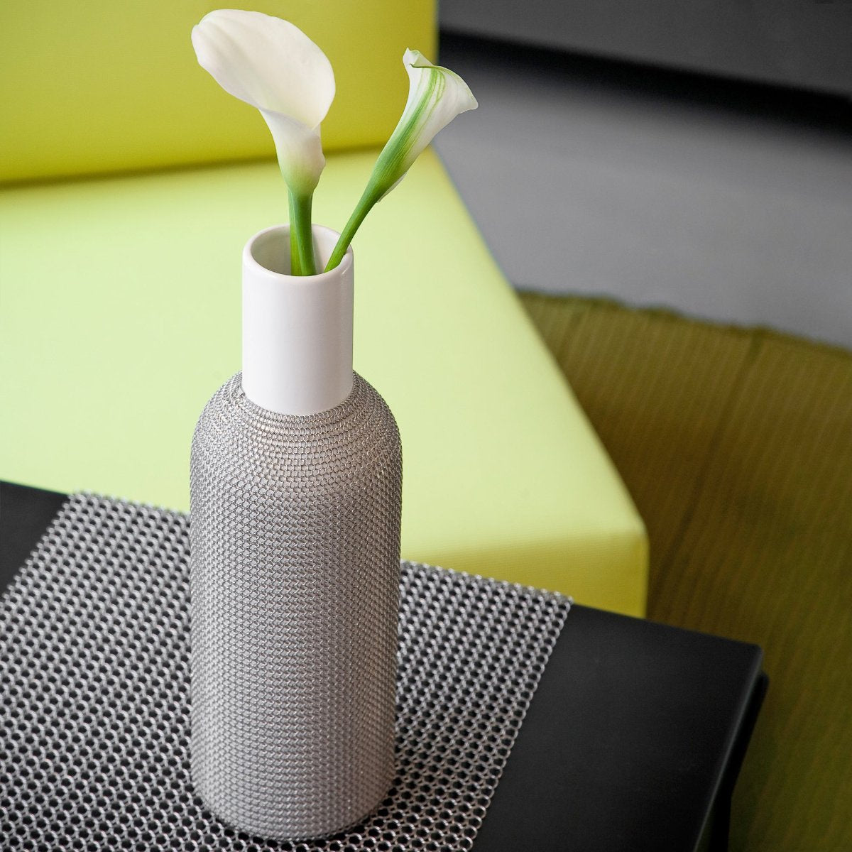Die Originalität und Qualität der Dekovase grau mit Kettengeflecht wird Sie verzaubern.