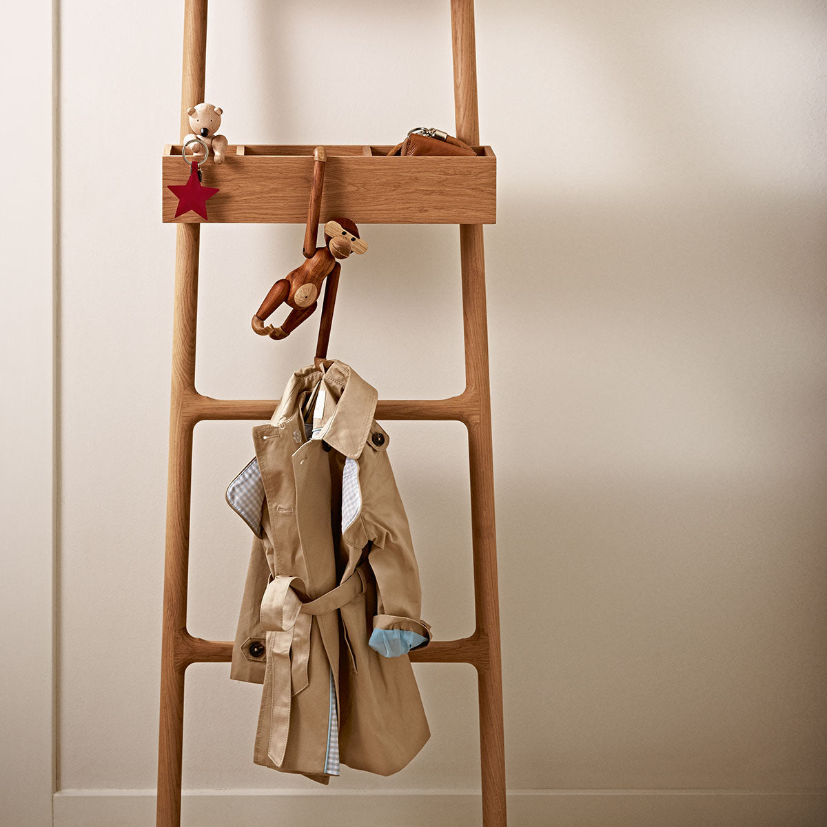 Schon 1951 entwarf Kay Bojesen den Holzaffen mit seinem schelmischen Gesicht und dem hellen Bauch und noch heute ist er sehr beliebt. Hochwertiges Holz und eine exzellente Verarbeitung lassen diese Holzaffen überall im Mittelpunkt stehen. Inzwischen ist der Holzaffe ein begehrtes Sammlerobjekt und wird von Generation zu Generation weitergegeben. Die mit viel Liebe gestalteten Tiere finden ihren Platz im Regal, im Büro oder im Kinderzimmer. Inzwischen ist die Affenbande auf drei verschiedenen Größen angewachsen.
