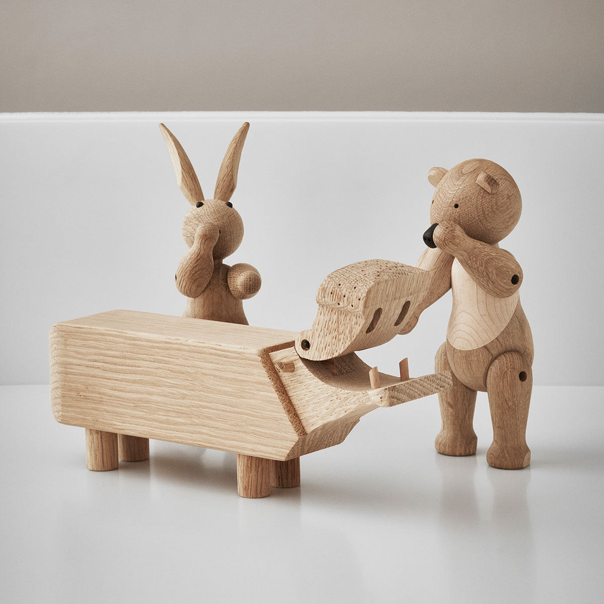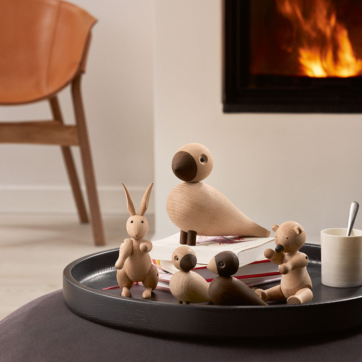 Schon 1957 erblickte der Holzhase von Kay Bojesen das Licht der Welt und ist auch heute noch sehr beliebt. Hochwertiges Holz und eine exzellente Verarbeitung lassen diese Hasen überall im Mittelpunkt stehen. Inzwischen ist er einbegehrtes Sammlerobjekt und wird von Generation zu Generation weitergegeben. Die mit viel Liebe gestalteten Tiere finden ihren Platz in Regalen, im Büro oder im Kinderzimmer und das nicht nur zur Osterzeit.