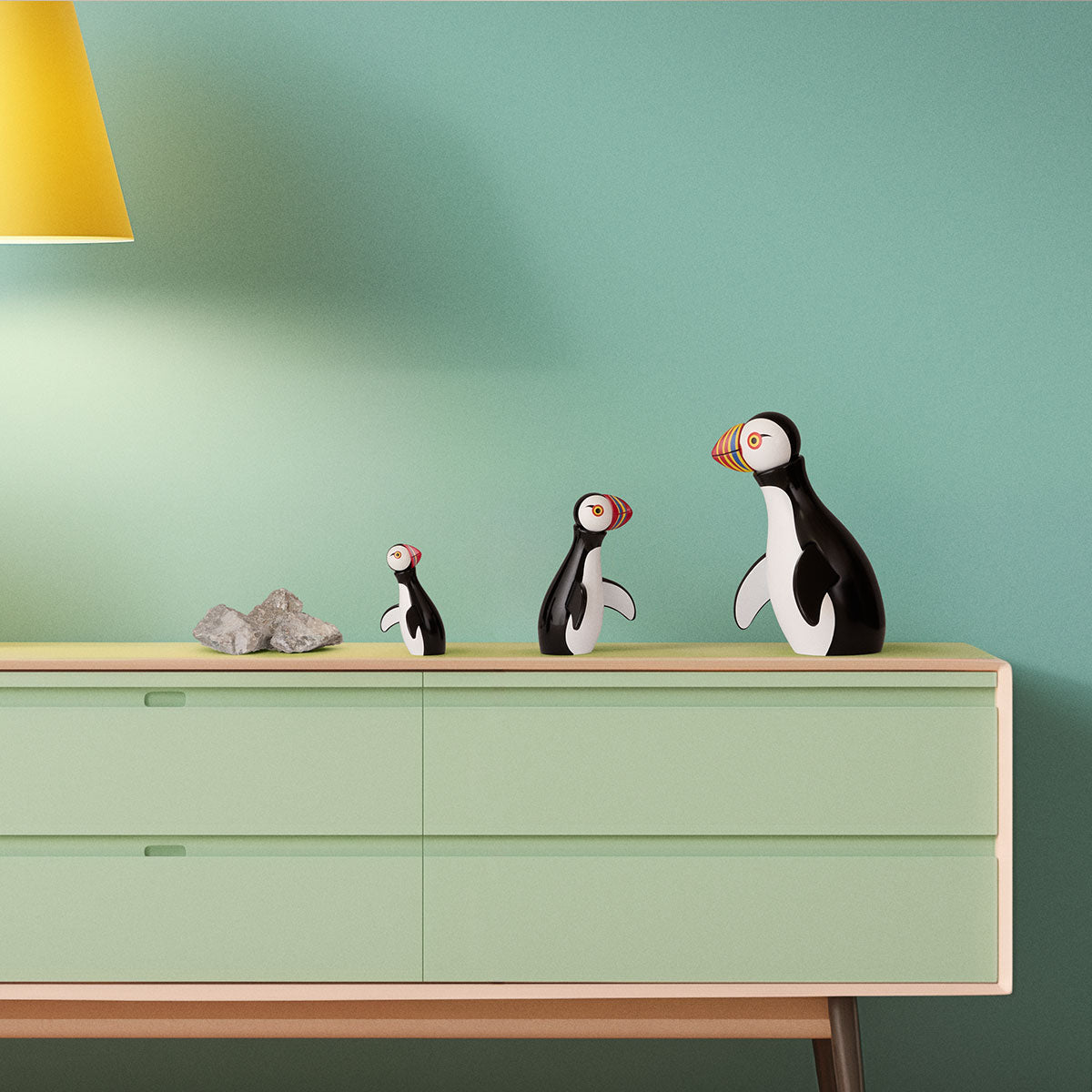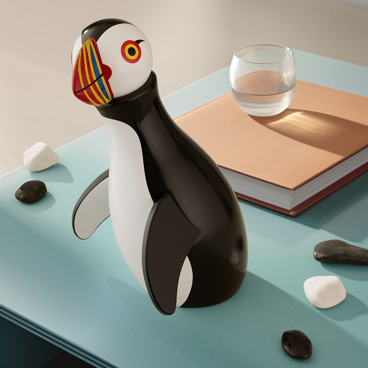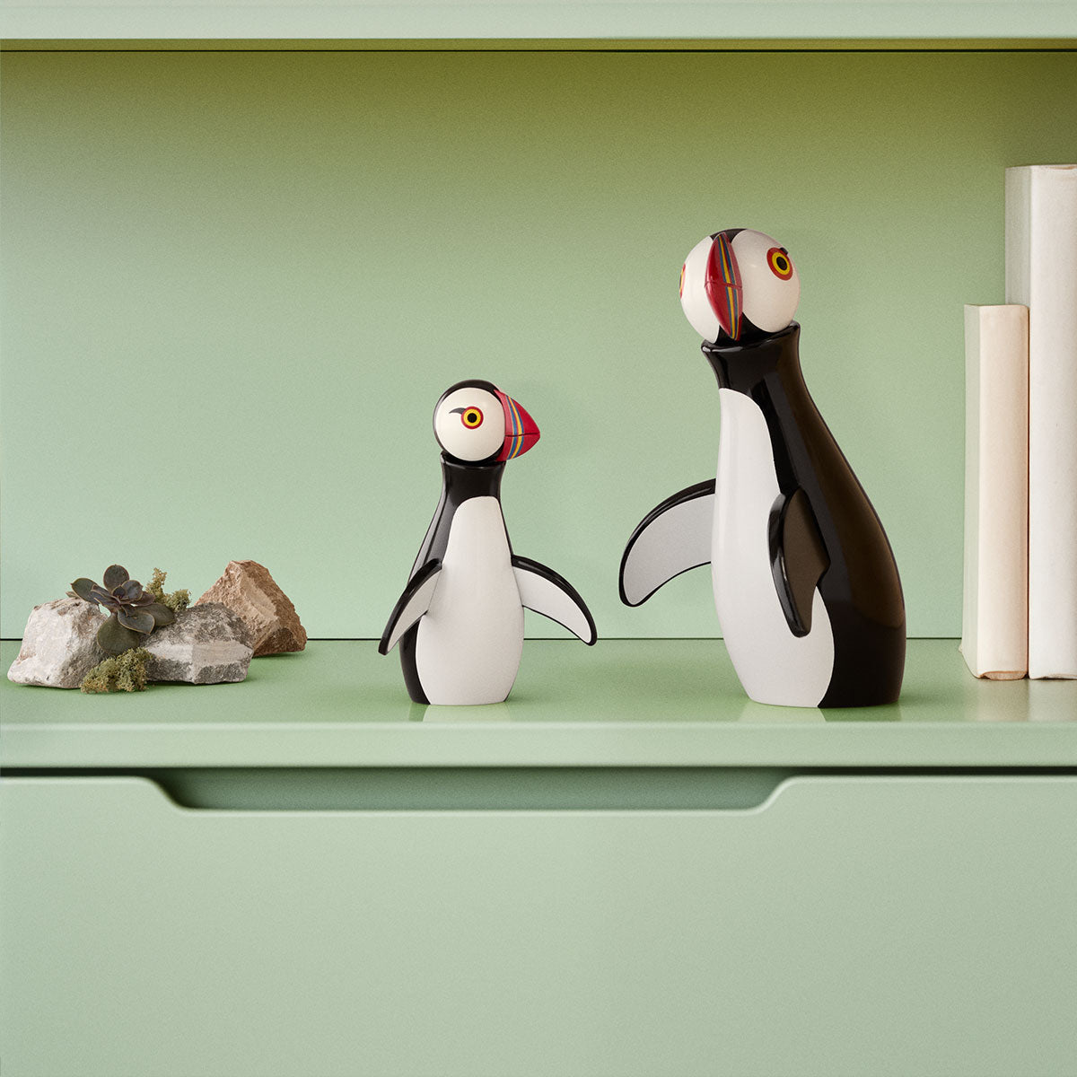Heimkehr vom Meer! Mit ihrem niedlichen Antlitz und ihren offenen Flügeln gewinnt die Holzfigur Papageitaucher schnell neue Freunde und begeistert durch ihr zeitloses Design Jung und Alt. Nach einem Entwurf von Kay Bojesen aus dem Jahr 1954 hält der handbemalte Papageientaucher aus Holz nun Einzug in das moderne Zuhause und verleiht jeder Wohnung eine persönliche Handschrift.