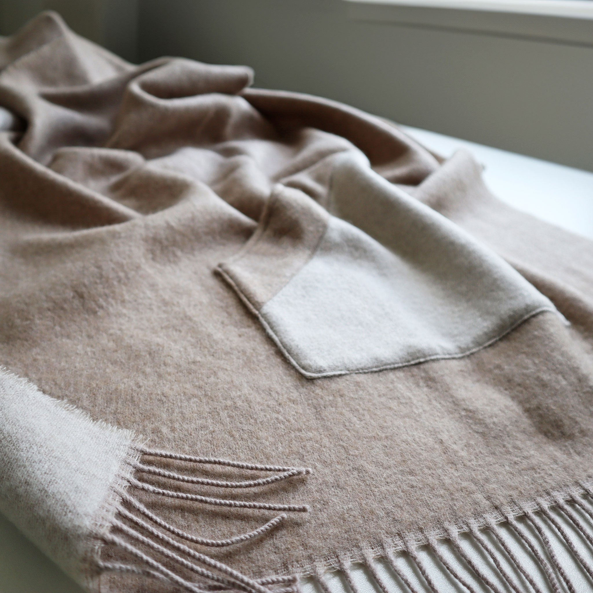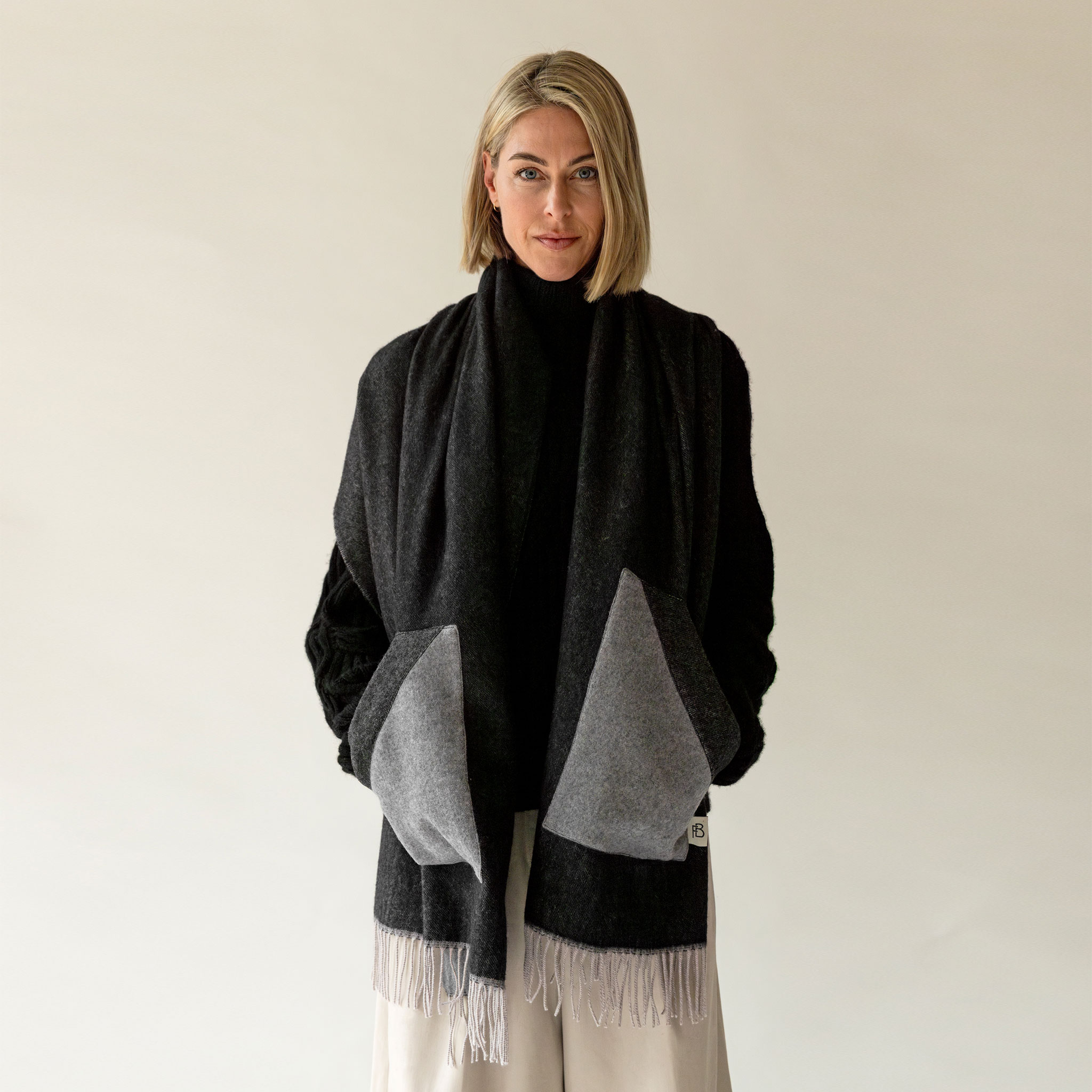 Die Alassio Stola mit Taschen der renommierten deutschen Manufaktur Franz Barth aus Bayern verbindet auf elegante Weise Stil und Funktionalität. Dieses großzügige Doubleface-Accessoire ist mit 65 x 195 cm weit mehr als eine weiche Stola: Neben den hochwertigen Materialeigenschaften bietet es zwei praktische Taschen, ideal zum Wärmen der Hände oder zur sicheren Aufbewahrung von Mobiltelefonen, Taschentüchern oder Schlüssel. Die farblich abgesetzten Taschen setzen einen stilvollen Akzent zur unifarbenen Stola, deren Rückseite in einem hellen Ton gehalten ist. Die Mischung aus 60 % Kaschmir und 40 % Schurwolle verleiht ein besonders sanftes und anschmiegsames Tragegefühl.