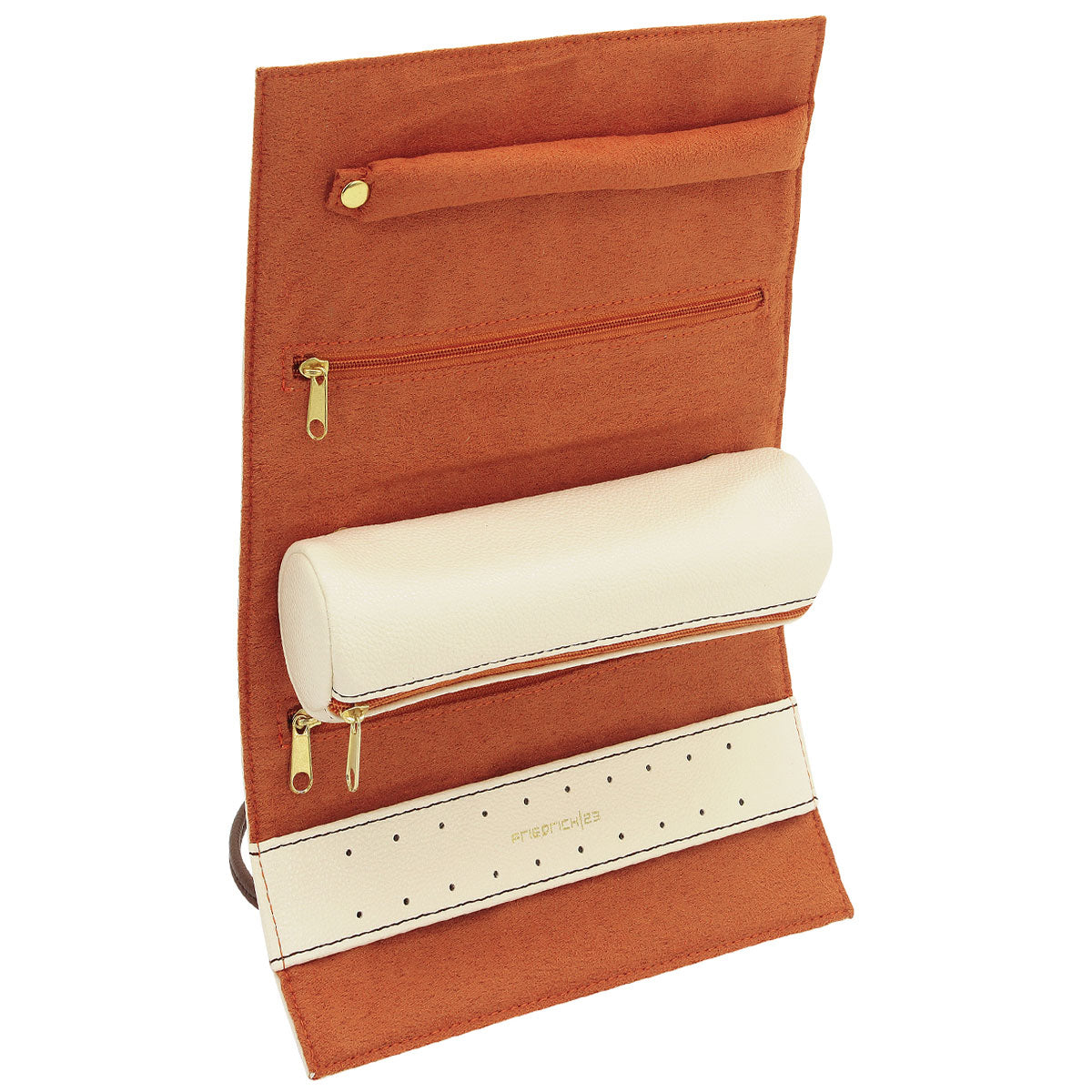 Die Schmuckrolle Ascot von Friedrich23 bietet den optimalen Schutz für alle Ihre Wertsachen und Schmuckstücke. Aus hochwertigem Kunstleder gefertigt ist sie eine modische wie praktische Alternative zur klassischeren Schmuckaufbewahrung wie in etwa dem Schmuckkoffer. Vom Aufbau her ähnelt Ascot einer Kulturrolle - eine flache Tasche, die sich zusammenrollen und verschließen lässt. Im Inneren der Schmuckrolle befinden sich zwei Reißverschlussfächer, ein herausnehmbares Reißverschluss-Täschchen, eine Haltevorrichtung für Ringe und eine Ohrringleiste mit Platz für bis zu zehn Paar Ohrringe. Verschlossen wird sie mit einem Schnürband in Akzentfarbe und hat anschließend eine Größe von ca. 20 x 7 cm. Aufgrund ihrer kompakten Größe und übersichtlichen Aufteilung macht sich die Schmuckrolle Ascot auch wunderbar als Begleiter auf Reisen und im Urlaub.