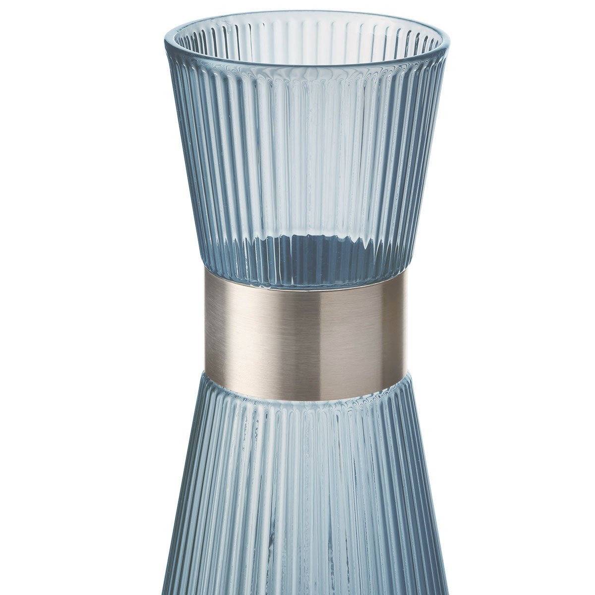 Freunde von funktionellem und schlichtem Design haben ihr Herz schon lange für die Grand Cru Serie von Rosendahl entdeckt. Designer Erik Bagger kreiert mit seinem Blick für Details und seinem besonderen Gefühl für das Zusammenwirken verschiedener Materialien schlichtes und dennoch stilvolles Tafelgeschirr. Jetzt hat Rosendahl die beliebte Serie um die Grand Cru Wasserkaraffe in Aqua erweitert. Servieren Sie eiskaltes Wasser, erfrischende Smoothies oder frisch gepresste Säfte in der modernen Glaskaraffe mit einem Fassungsvermögen von 1 Liter. Aus hellblauem, mundgeblasenem Glas ist die Karaffe zugleich leicht und elegant. Die Rillen-Struktur verleiht ihr eine moderne Optik und findet sich in anderen Produkten der Grand Cru Serie wieder. So kann durch weitere Tischaccessoires eine harmonische und klare Linie auf den Tisch gebracht werden. Außergewöhnlich ist auch die Kombination des Materials Glas mit der patinierten Manschette aus rostfreiem Stahl am Hals der Karaffe. Durch diese bekommt die Wasserkaraffe ein besonders edles Aussehen, das jede gedeckte Tafel im Handumdrehen aufwertet.